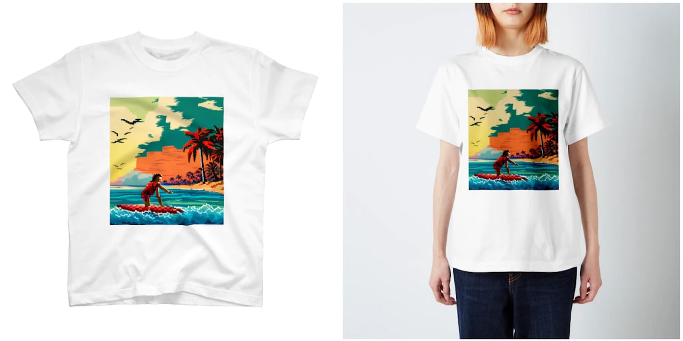 「ユーザーがテキストを入力して生成ボタンを押すだけで、イラストにTシャツが合成された状態のイメージ画像が作成されます。その際、任意でスタイルを選択するだけで、ドット絵風、漫画風、ネオン風といったテイストを反映することもできます。