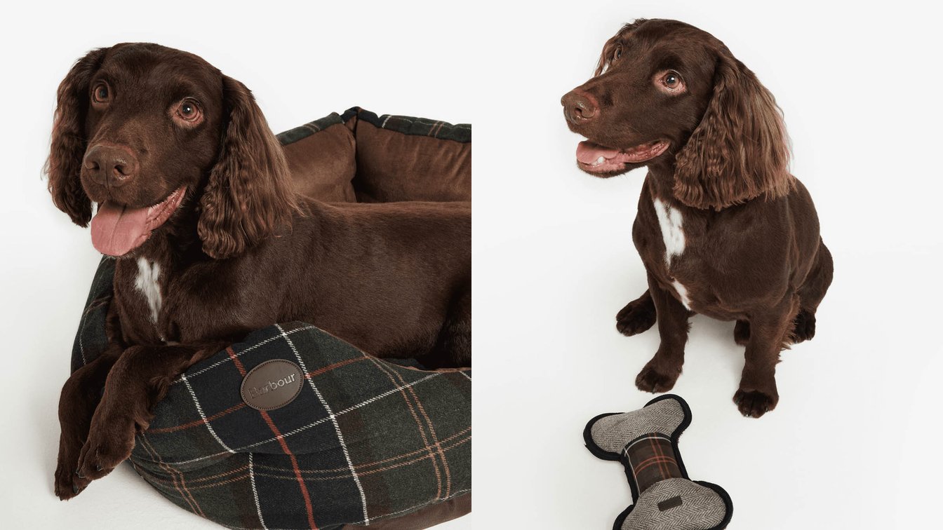 ドッグアイテムには、愛犬とお揃いのコーディネートを楽しめるドッグコートやタータンチェックのドッグベッド、ドッグトイなど幅広いアイテムをラインナップする。