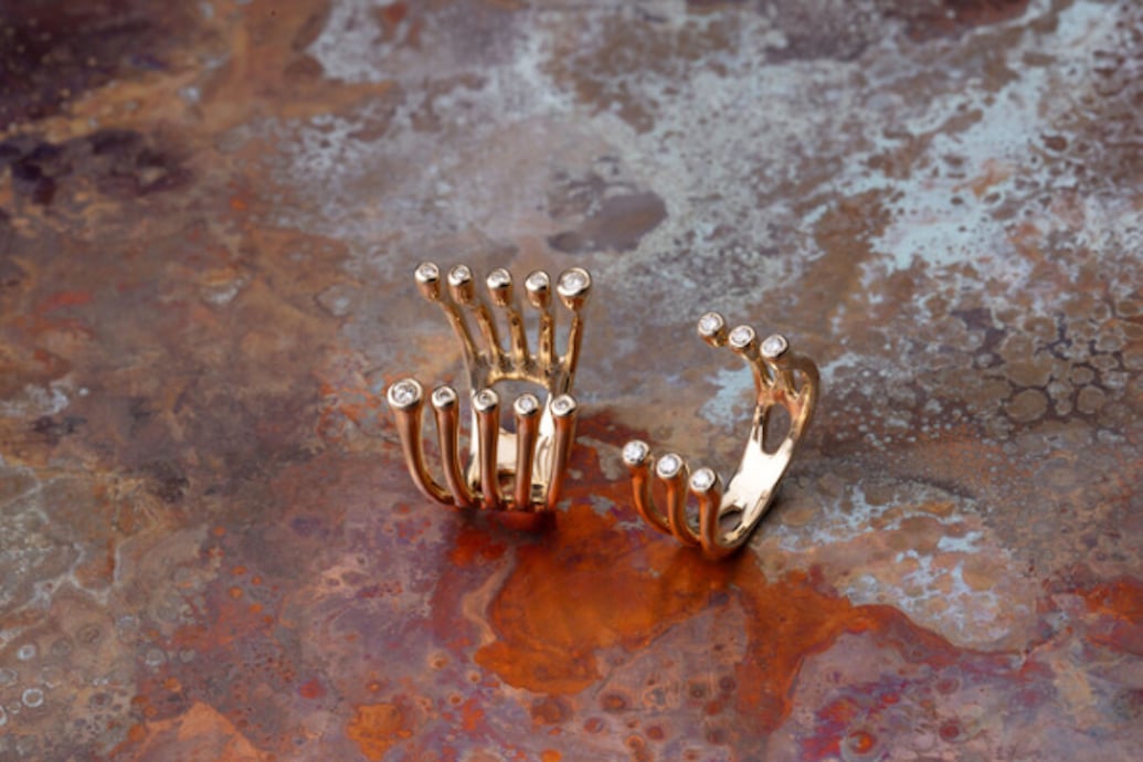 「Hirotaka」は、ニューヨークの小さなトランクショーからスタートしたジュエリー・ブランド。東洋と西洋が行き交う交差点で見つけた不思議な形、熱帯の森で輝く動植物の奇妙な美しさをインスピレーションソースに、ブランドオーナーである井上寛崇氏がデザインを担当している。
