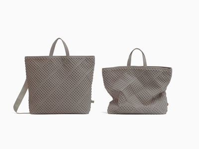 MOGU BAGは、メリッサでは初となるリバーシブル仕様で製作。構造はしっかりと保ちながらも柔軟性があり、モジュラーパターンの繋げ方を変えることで視覚と感覚に面白みを感じられるデザインに仕上げたという。A4サイズを入れることができる大きさのワンサイズ展開で、カラーはイエロー、ホワイト、ブラック、ピンクの4色を用意している。