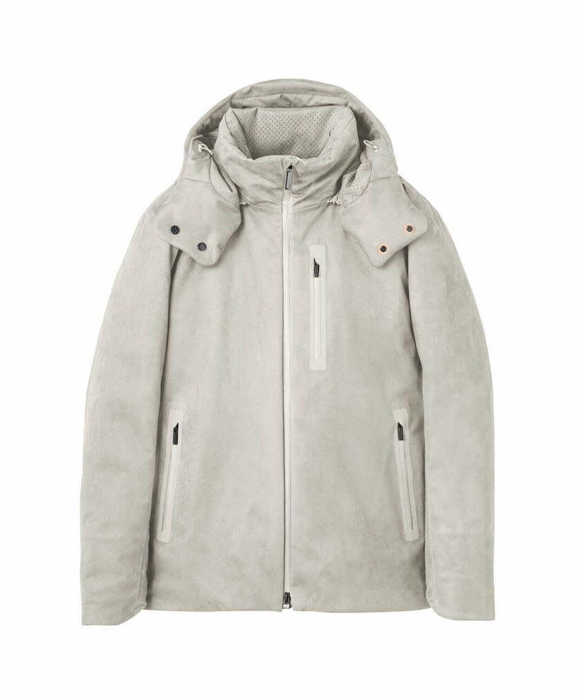 同じ人工スエードを使用し、ややゆったりしたボックスシルエットが特徴の「シンセティック スエード ハードシェルジャケット」(110,000円)や、パンチング加工を施したミニマルなパデットブルゾン(110,000円)、高機能メッシュ素材で3シーズン使えるフーディー(41,800円)など、他にも注目のアウターが数多く発表されたので、ぜひ比較して選んでほしい。