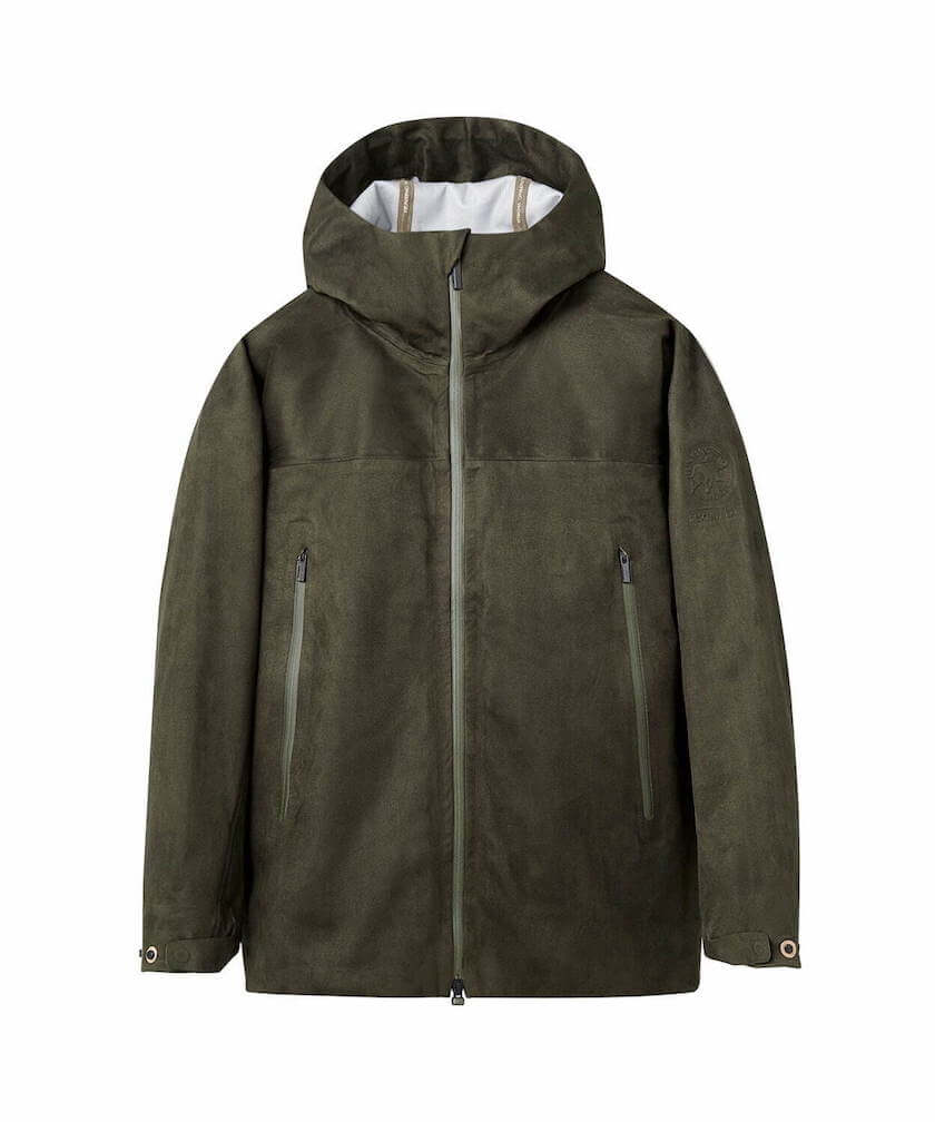 「シンセティック スエード 1000FP ダウンジャケット」(209,000円)は、段違いの軽さと着心地を叶える人工スエードを採用した一着。裏面には耐水性、透湿性に優れたラミネート加工を施した上、縫い目にもシームテープを施すという徹底ぶり。カラーはハンターグリーン(カーキ)、ブラック、ライトグレーの3色展開だ。