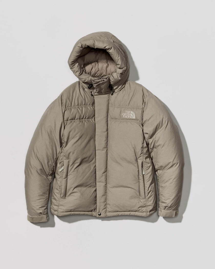「オルタレーションバフズジャケット」(59,400円)は、マットな質感のナイロン素材を使用し、ボリューミーなシルエットながら落ち着いた印象で日常使いしやすい一着。中綿にはリサイクルダウンを、裏地には防風性と透湿性の高い「ゴアテックス ウィンドストッパー」を採用し、「軽くて暖かい」を追求した。