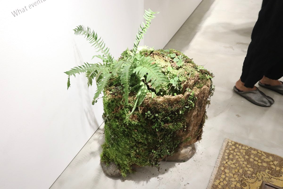 会場のそこかしこに、花掛入や植物がさりげなく散りばめられているのも注目すべきポイントだ。見つけるたびにホッとする。