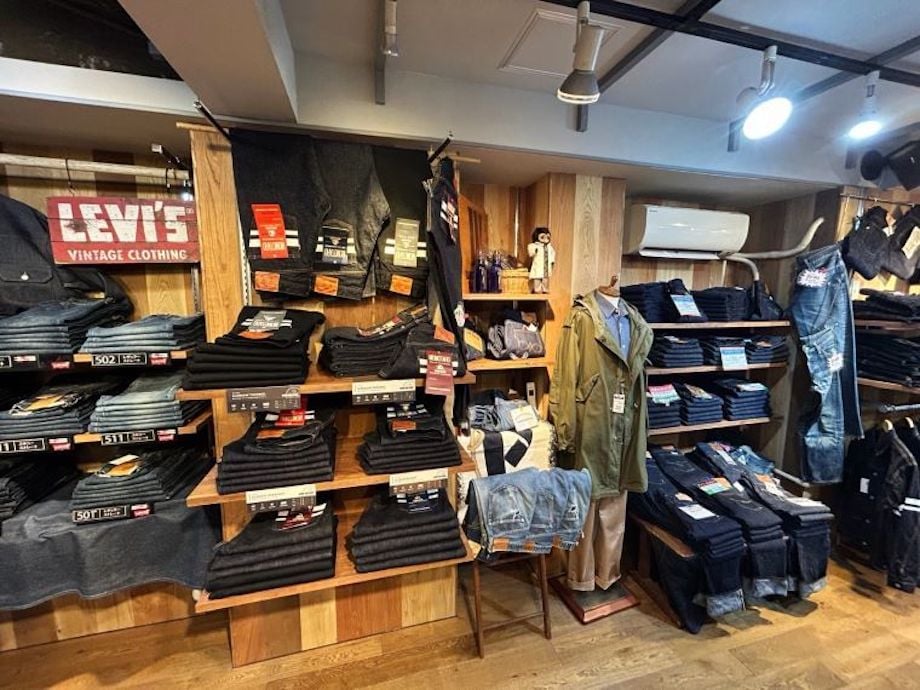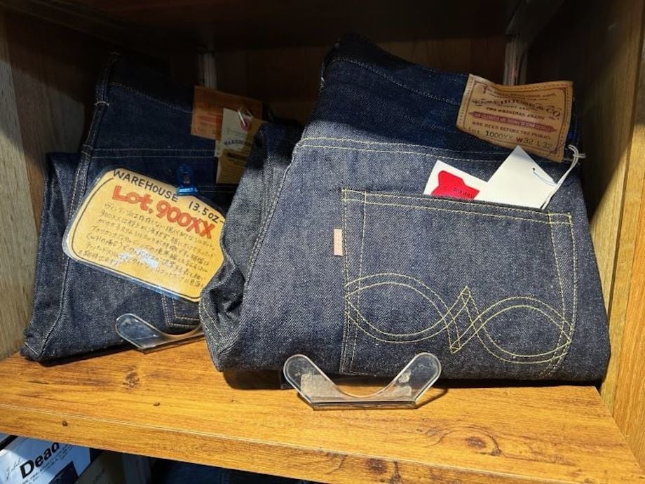 インバウンド(訪日外国人)にも人気のブランド「桃太郎ジーンズ」、ヒノヤのオリジナルブランド「バーガスプラス」などの商品が主力。本店には置いていない「ウエアハウス」のアイテムも揃えるほか、フライトジャケットといったアウターも充実している。