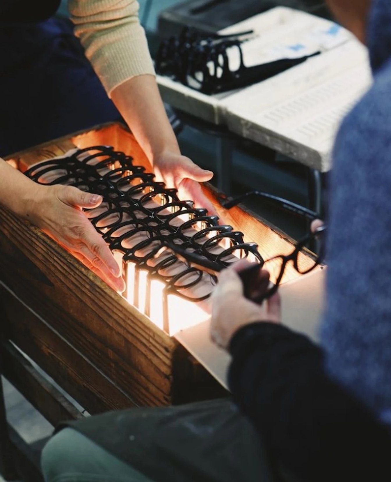 「アイウエアは福井県・鯖江の職人さんたちがハンドメイドで丁寧にフレームを曲げるなどして作っているのですが、お店に並んだ状態はまだ不完全で、お客様一人ひとりの耳の形や鼻の形にフィッティングさせてはじめて完全な状態になります。