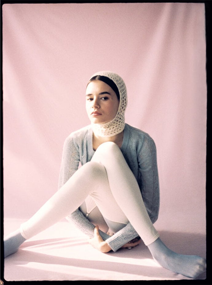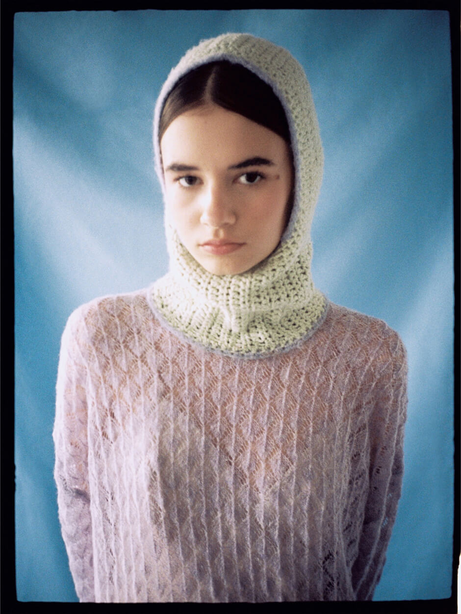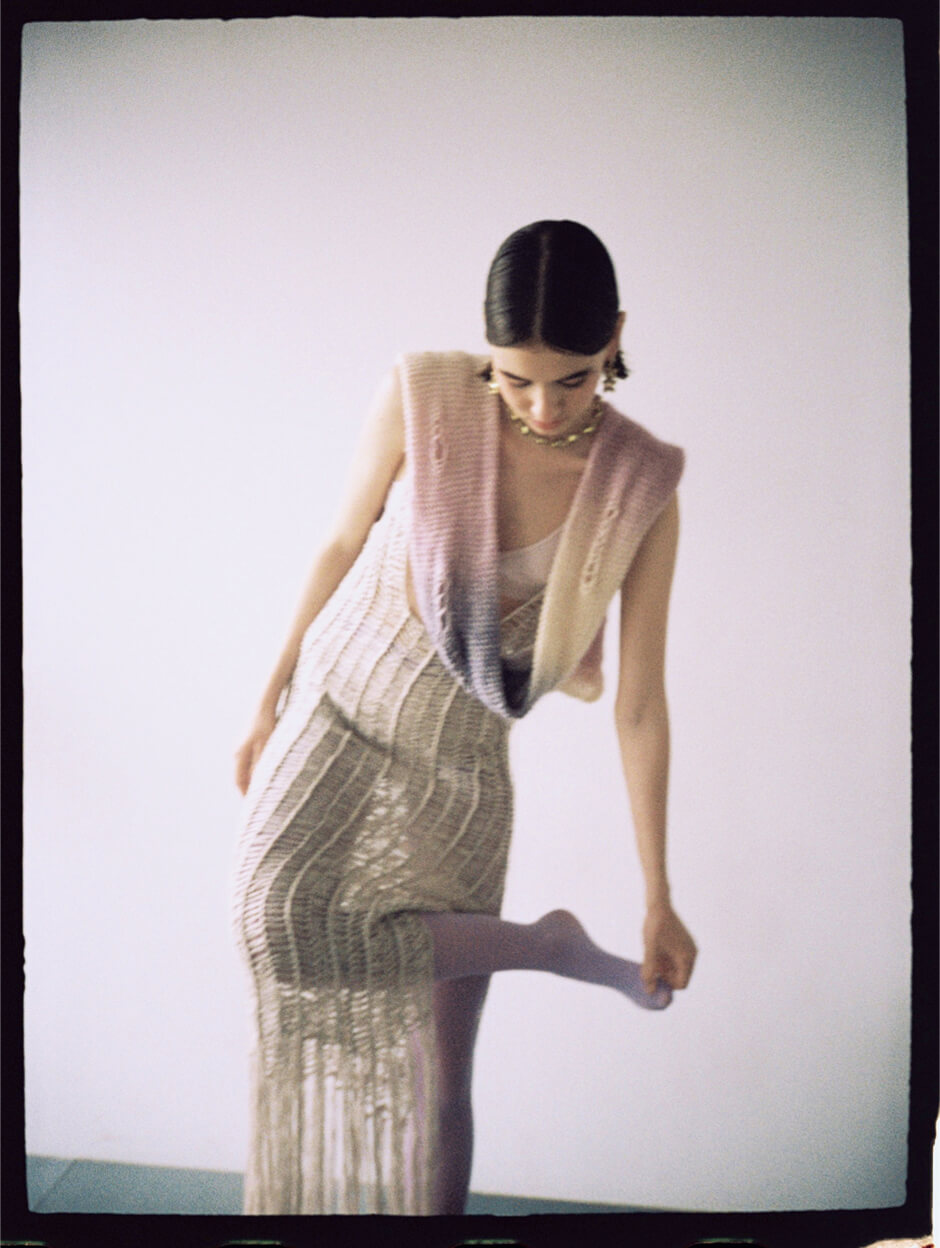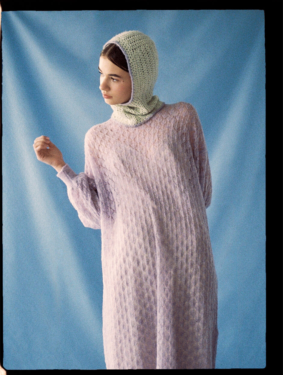 dress by ZARA, mask hat by JEMAPERLE, bra, tights and shoes stylist’s own