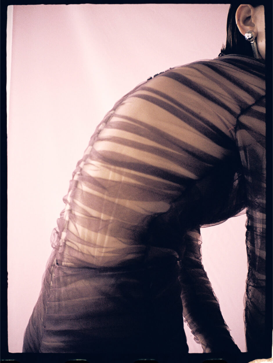top by ALK UNDER LIGHT, bodysuit by ZARA, headdress by JEMAPERLE, earcuff by PETITEA