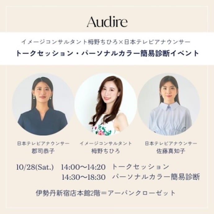また、10月28日(土)には、日本テレビアナウンサーによるトークセッションとパーソナルカラー簡易診断も開催する。