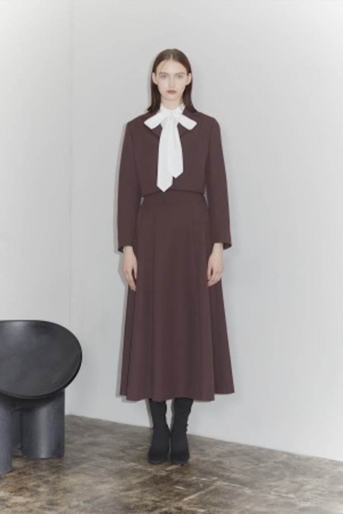 「Noble short jacket(ノーブル ショート ジャケット)」29,700円(税込)、「Audire bowtie blouse(アウディーレボウタイブラウス)」22,000円(税込)、「Noble high-waist skirt(ノーブル ハイウエスト スカート)」26,400円(税込)、