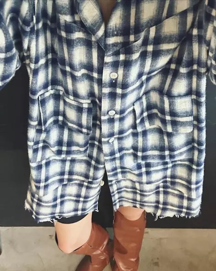 例えば、オーバーサイズのゆったりとしたパジャマシャツを着る日は、ボトムスはショート丈のベイカーパンツ×ロングブーツみたいに、脚を出して“女性らしさ”を演出しています。