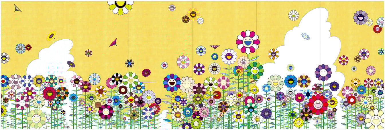 村上隆《かわいい夏休み(黄金の王国の夏休み)》(参考作品) 2008年 デザインデータ 3000×9000 mm ©2008 Takashi Murakami/Kaikai Kiki Co., Ltd. All Rights Reserved.