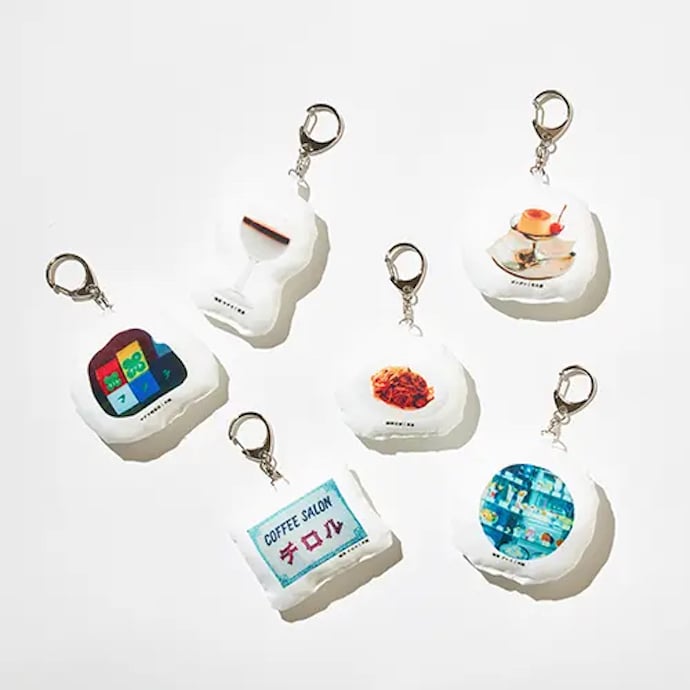 各店のロゴ、名物メニューなどをデザインした「クッションキーホルダー」(税抜1800円)や、