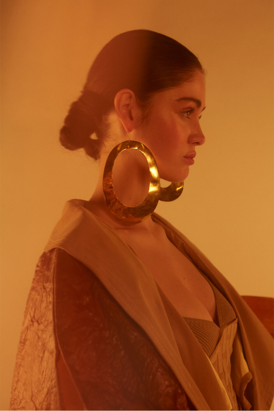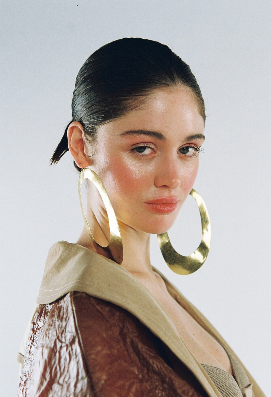 coat by S.STUDIO, top by JACQUEMUS, earrings by FERNANDO RODRIGUEZ