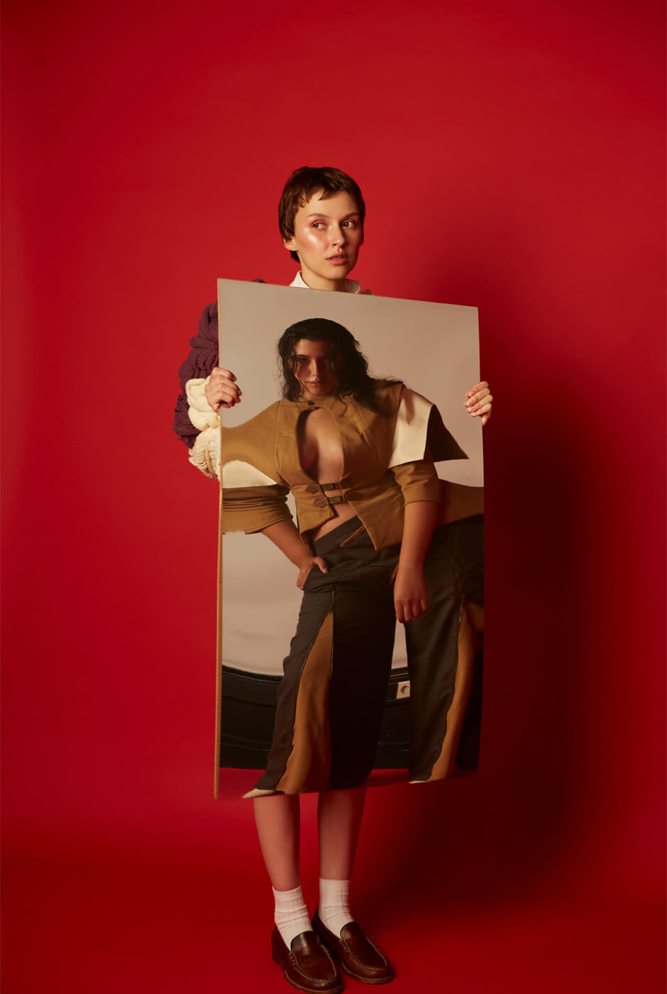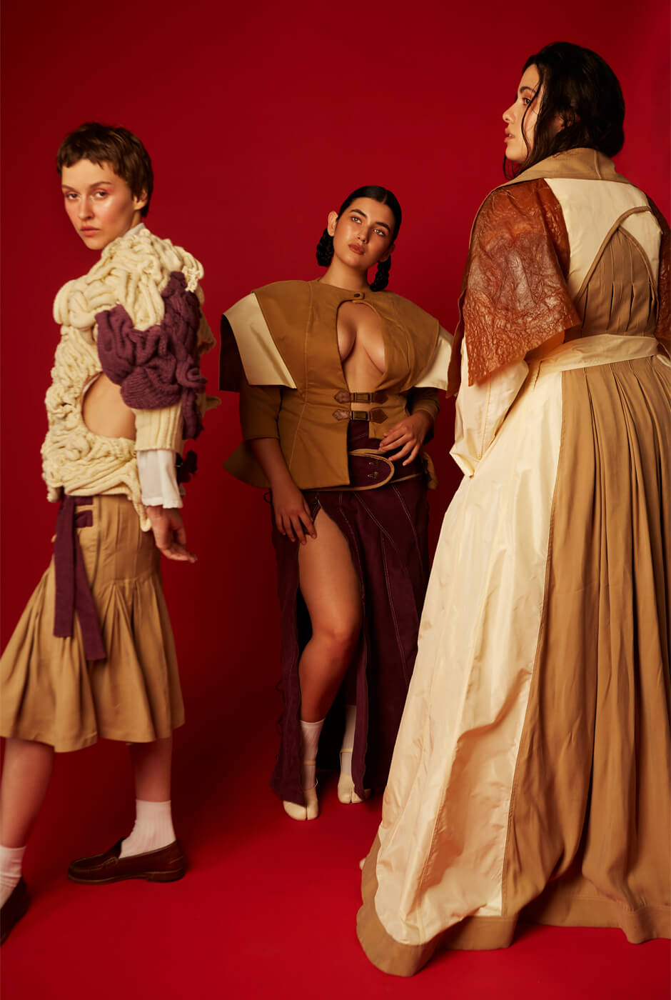 摂食障害や身体醜形症と向き合いながら、さまざまなサイズに対応するインクルーシブな洋服を見つけるのに苦労したという自身の経験を元に、制作を行う。