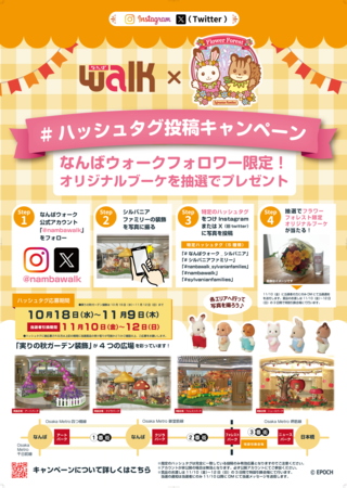 大阪・難波の地下街「なんばウォーク」は、エポック社のロングセラートイブランド「シルバニアファミリー」とのコラボ企画「なんばウォーク×シルバニアファミリー Flower Forest 実りの秋ガーデン」を、10月18日(水)~11月12日(日)の期間で開催する。