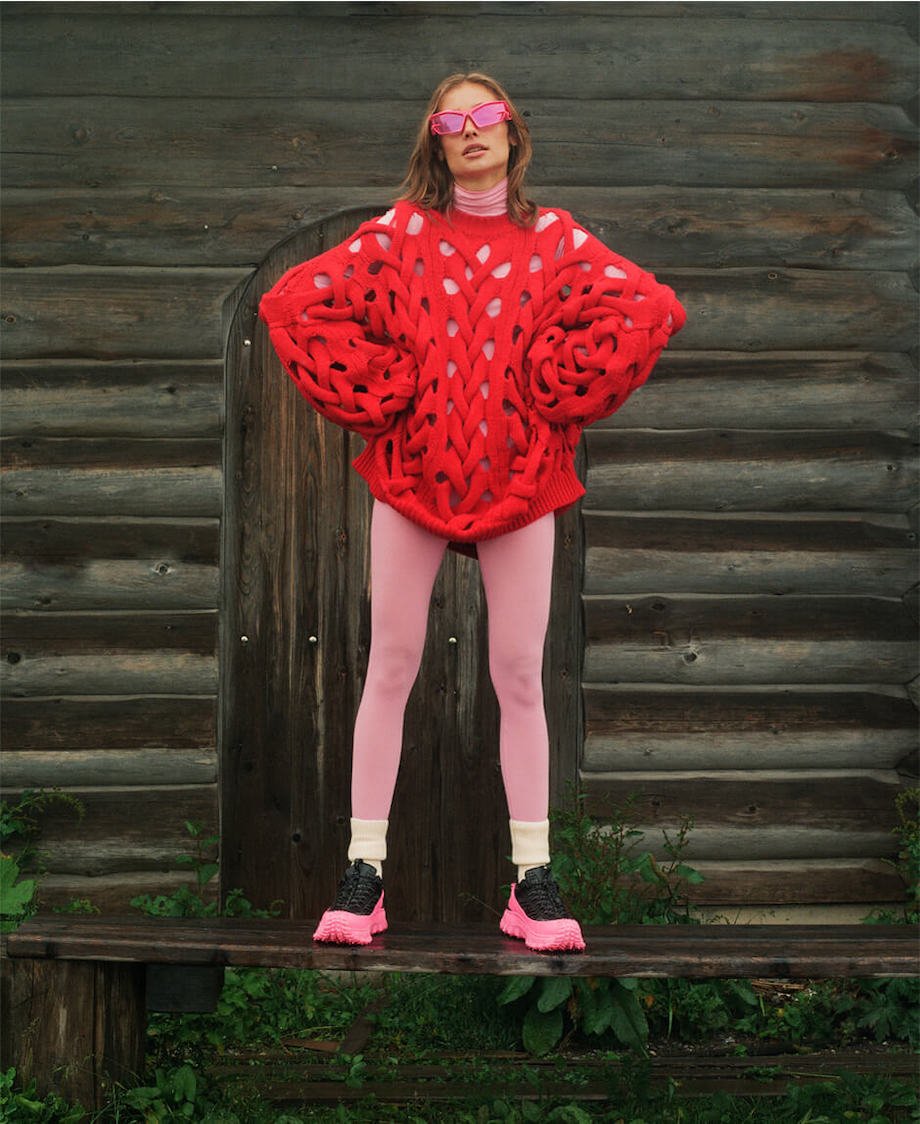 top by ETRO, inner top, shorts and gloves by ISA BOULDER, socks and leggings by FALKE, shoes by CELINE BY HEDI SLIMANE