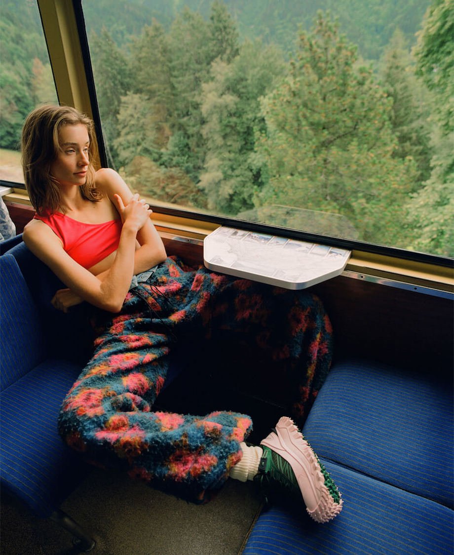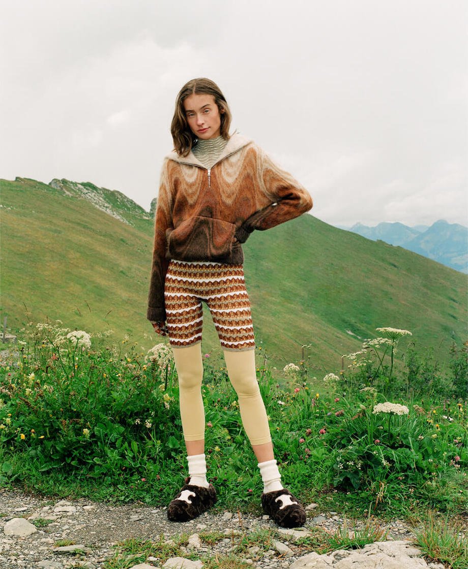 物語の内容は、スポーツウェアからインスピレーションを得ており、私たちはスイスの風景の中でファッションハイカーを追いかけます。