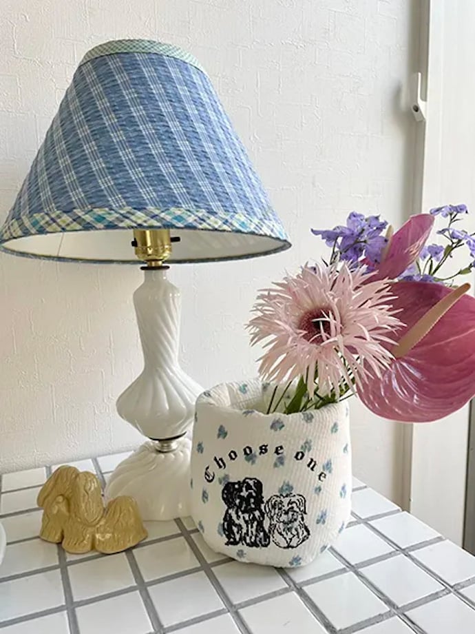 また、沖縄・宜野湾のアンティークショップ「USA Furniture(ユーエスエー ファニチャー)」で見つけた、チェック柄のランプシェードもお気に入りのインテリアの1つです!