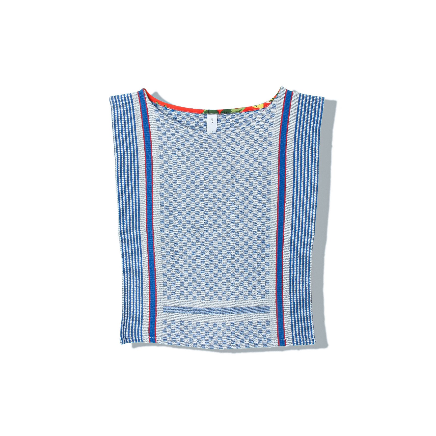 会場では、今回のためにセレクトされた日本のヴィンテージ毛布を使用した「Blanket series」を数量限定で用意。定番のプルオーバー(3万4800円)、新作の前あきブルゾン(4万4000円)、バラクラバ(1万8500円)、ブックカバー(3800円)をラインナップする。このほか、伝統的なドイツのキッチンタオルで作られた 「Towel series」の受注販売を実施。ノースリーブトップス(8580円)やロングスリーブシャツ(2万6180円)、エプロン(9680円/全て税込み)などを揃える。