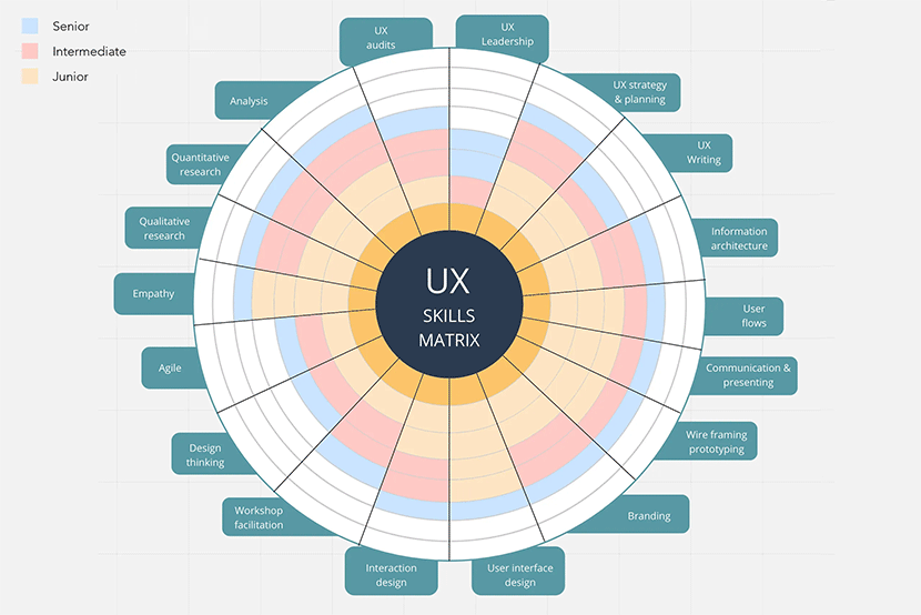 それに加え、職種に応じてビジュアルのデザインやモーショングラフィック、ペルソナ設計やインタラクション設計などの個別スキルを基準に入れていくとよいだろう。