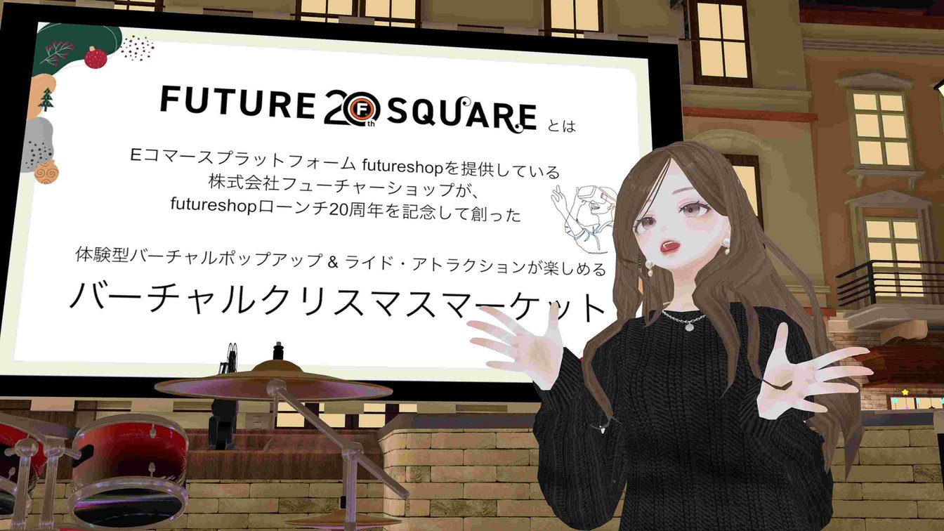通販サイト構築・運営サービス「futureshop」を展開するフューチャーショップは11月10日、サービス開始20周年を記念し、バーチャルワールド「FUTURE 20th SQUARE」を、ソーシャルVR(仮想現実)アプリ「VRチャット」上に開設した。futureshopを利用する6店舗がバーチャルポップアップストアを出店している。