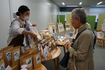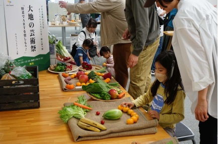 アート作品の展示のほかに、野菜で絵を描くワークショップや、芸術祭参加アーティストがパッケージをデザインした「鮭フレーク」や「鶏そぼろ」などコラボ商品の試食と、特別価格での販売を行った。ワークショップで使用した野菜は持ち帰ることが可能。