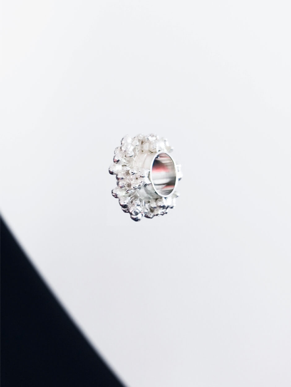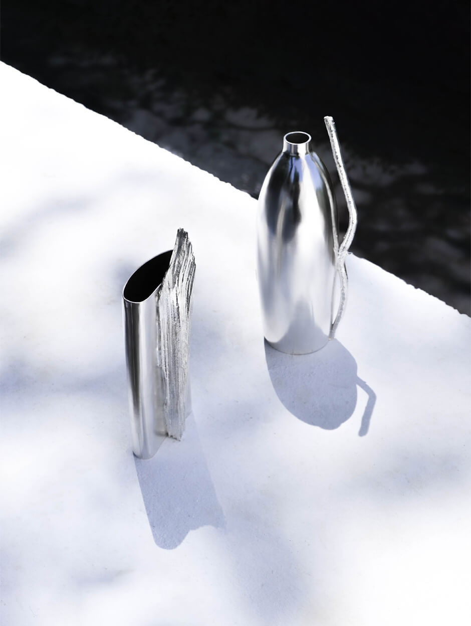 私は人間の最も深いところの感情を表現できるという点で、デザインを使うことにしました。こうした金属製のオブジェを見ると、曖昧な感覚になりますよね。年代をどう特定できるかも分からない。ある要素はひと目でなじみがあり、現代を思わせます。しかしシルバーという素材の選択によって、未来的な外観と同時に美しい古色が与えられます。