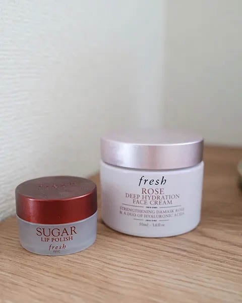 「FRESH」はアメリカ発のコスメブランドで、ニューヨークに行った際に見つけて、化粧水・クリーム・リップスクラブを購入しました。使用感と香りがとても良くて、クリームは肌がもっちもちになって、リップスクラブは唇がプルプルになるので、皆さんもぜひ使ってみてほしいです!