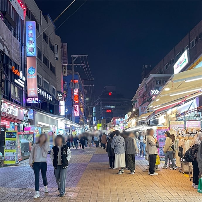 「MBTIおみくじ」があるのは、弘大入口駅の9番出口から、ホンデのメイン通りの1つである駐車場通りを進み、徒歩10分ほどの場所。