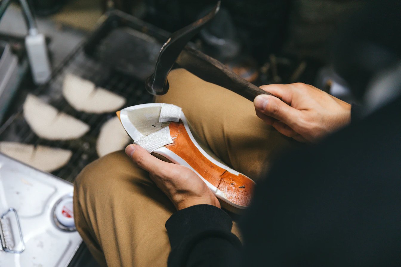 まず、オーダーを受け次第、同社で裁断した革や部材を工場へ発送する。浅草にあるアッパーの縫製工場で職人が製甲し、底付け工場で靴の成形やヒール打ち、仕上げを行う。その後、MARNONに納品され、検品を行ったのち、お客様の元へ届く。
