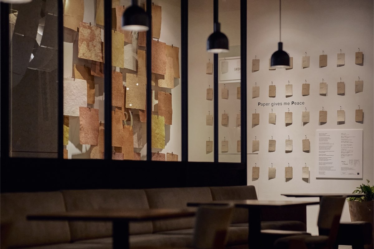 神宮前のブティックホテルTRUNK(HOTEL) CAT STREETのメインラウンジTRUNK(LOUNGE)にて、インスタレーション「Paper gives me Peace」が展示されている。期間は2024年3月下旬までを予定。