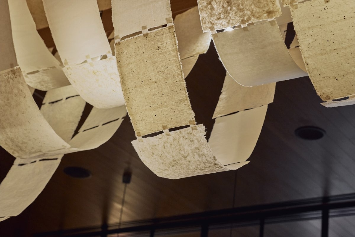 これまでにも、ひとつひとつ手作業で染められた藍染のモビール作品や、海洋漂流プラスチックで作られたランプシェードなど、独創的でサステナブルな作品を公開してきたTRUNK(HOTEL) CAT STREET。今回のインスタレーションでは、日本の伝統工芸である和紙を用いた“Paper road”をはじめ、和紙の特性である光の透過を活かしたアートピースをダイナミックに展開する。