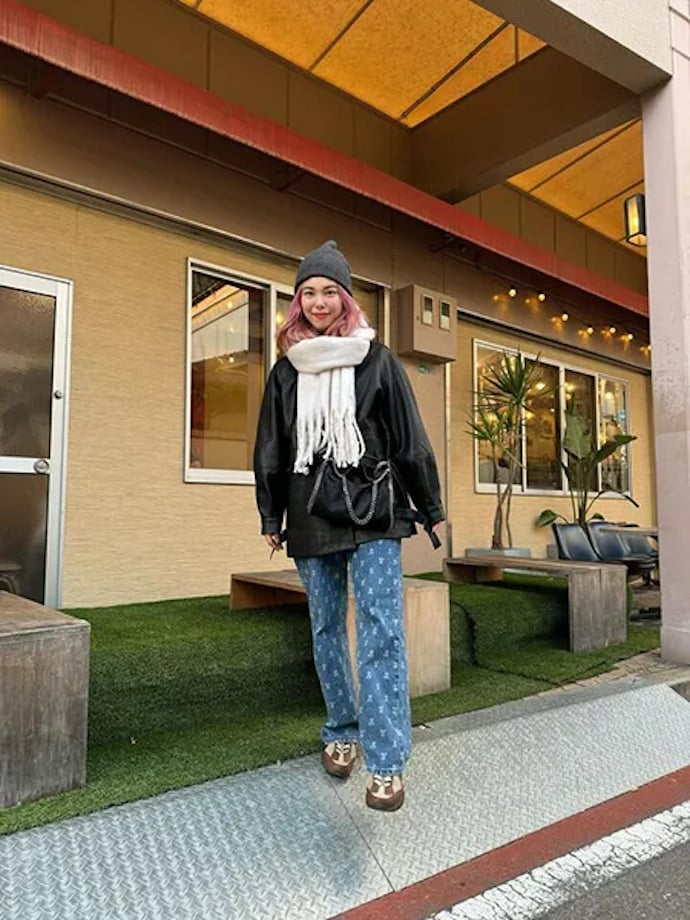 yuuka:「Rest & Recreation(レストアンドレクリエーション)」で購入したデニムです!総柄のデニムを持っておらず、アクセントになるものが欲しくて買いました。総柄ではありますが、柄の色味が控えめなので使いやすくて気に入っています。