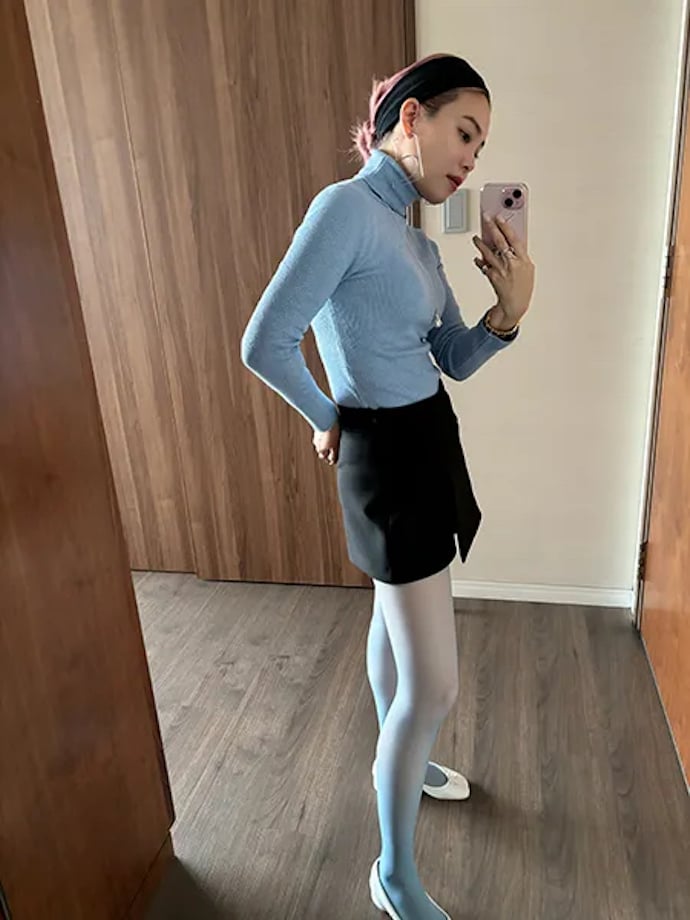yuuka:色味が鮮やかなので、タートルニットをチラ見せするスタイルがいいと思います!私は「Bibiy.(ビビィ)」で買った、ショート丈かつ襟がないタイプのジャケットを上に羽織ることが多いですよ。