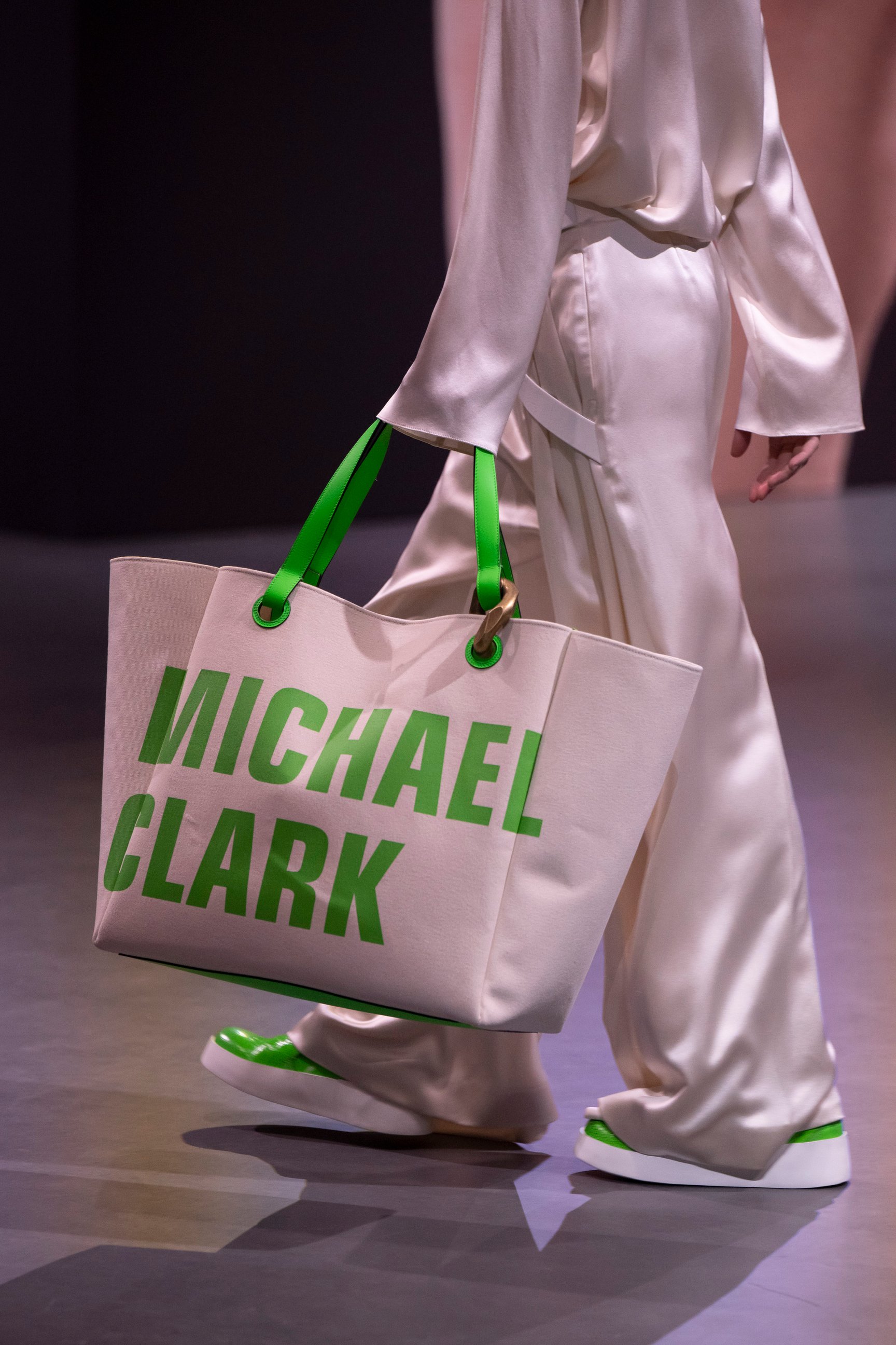JW アンダーソン(JW ANDERSON)は、イギリスのダンサー兼振付師であるマイケル・クラーク(Michael Clark)とのコラボレーションを発表した。1980年代に“パンク・バレエ”で一世を風靡したクラークは、長年アンダーソンにとって憧れの存在だったという。今回のコレクションでは、クラーク率いるダンスカンパニーのアーカイブポスターを取り入れたセットを設置。男性器やコカ・コーラ風のフォントで描かれた「Enjoy God's Disco」といったグラフィックもポスターから引用されたデザインだ。