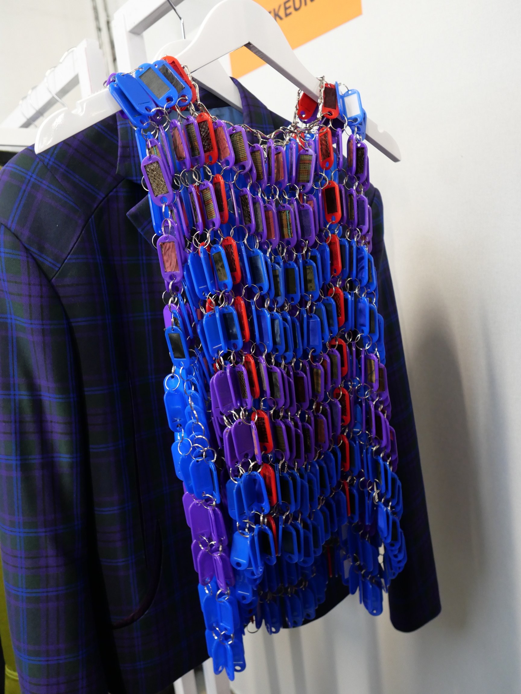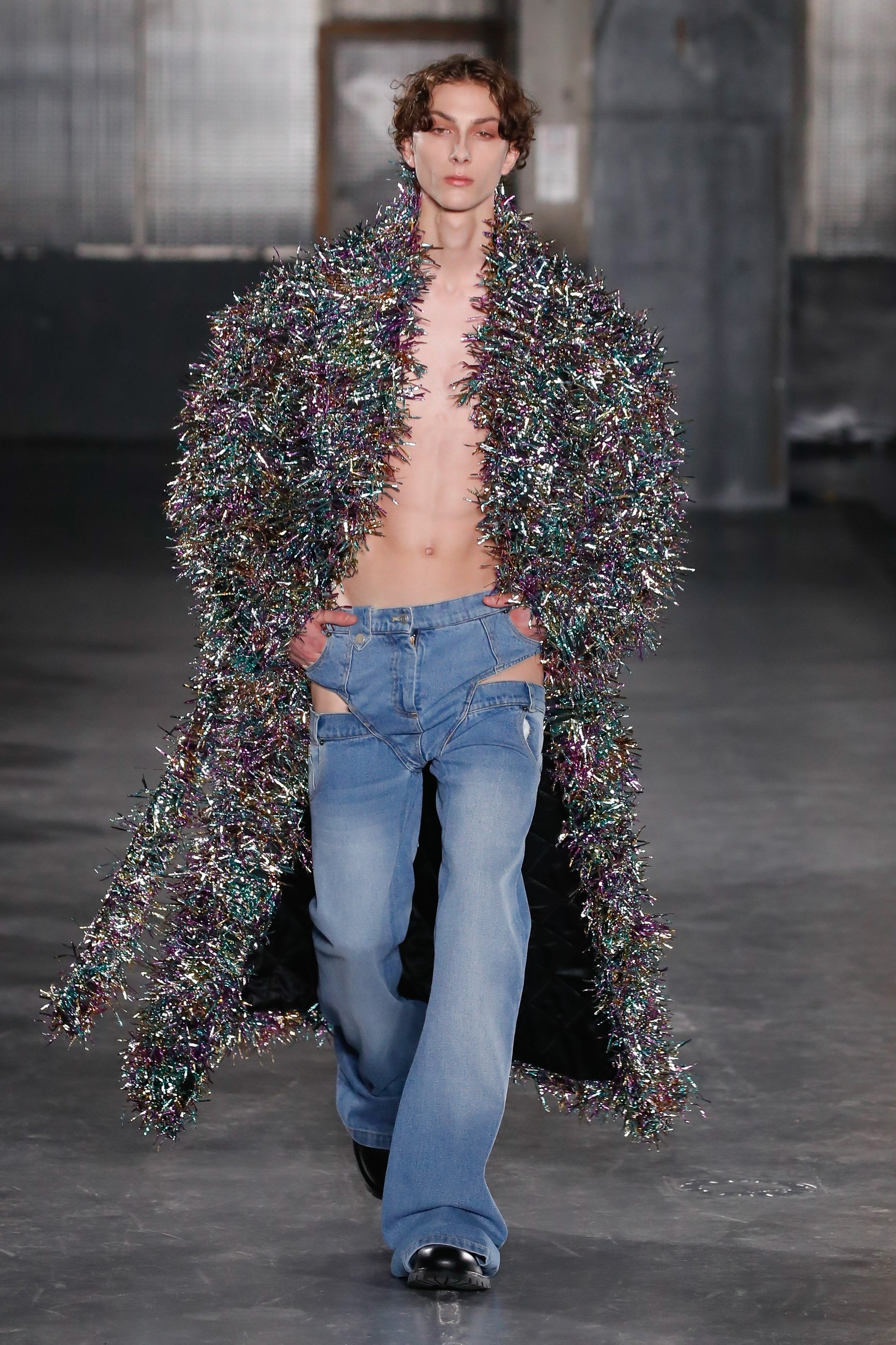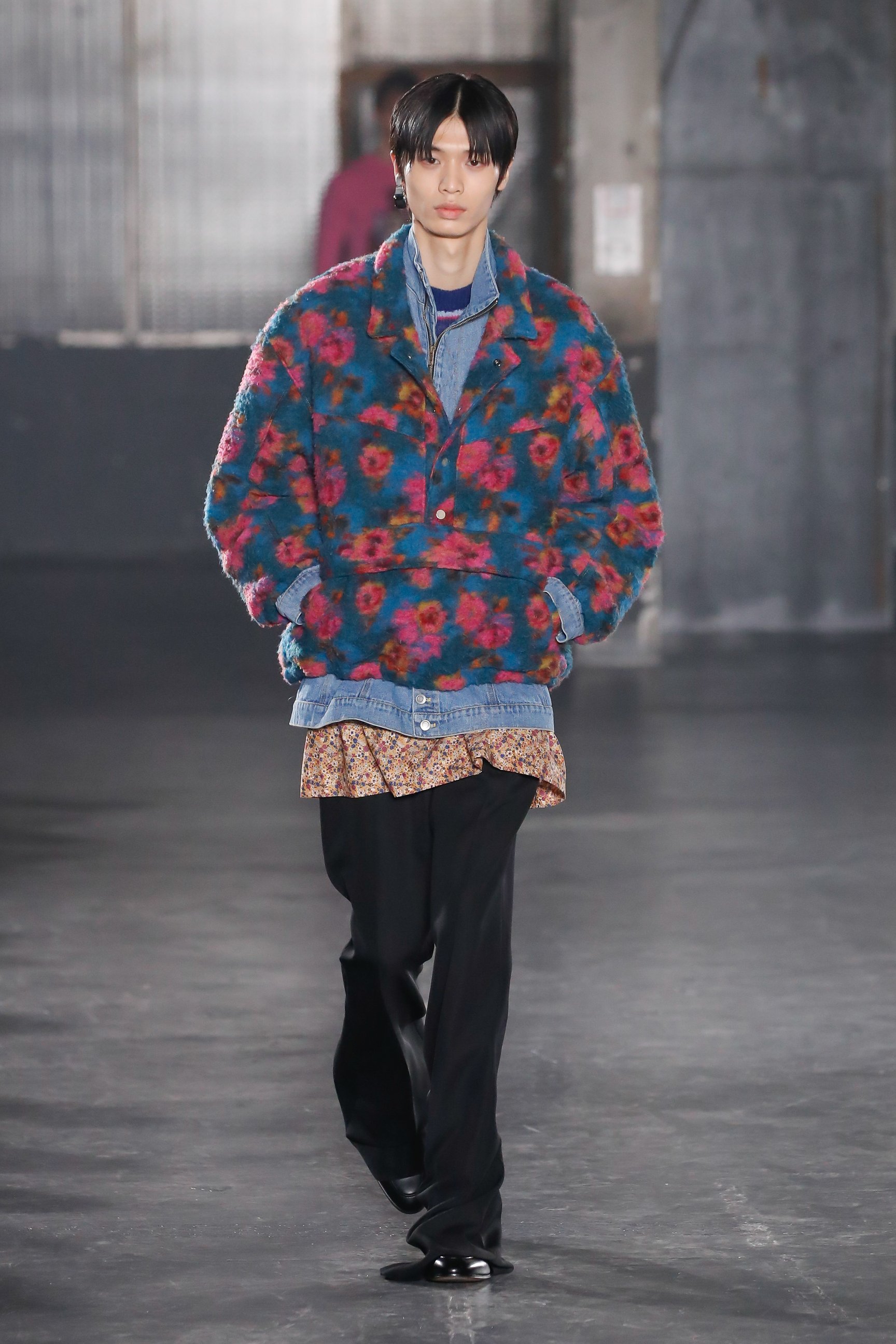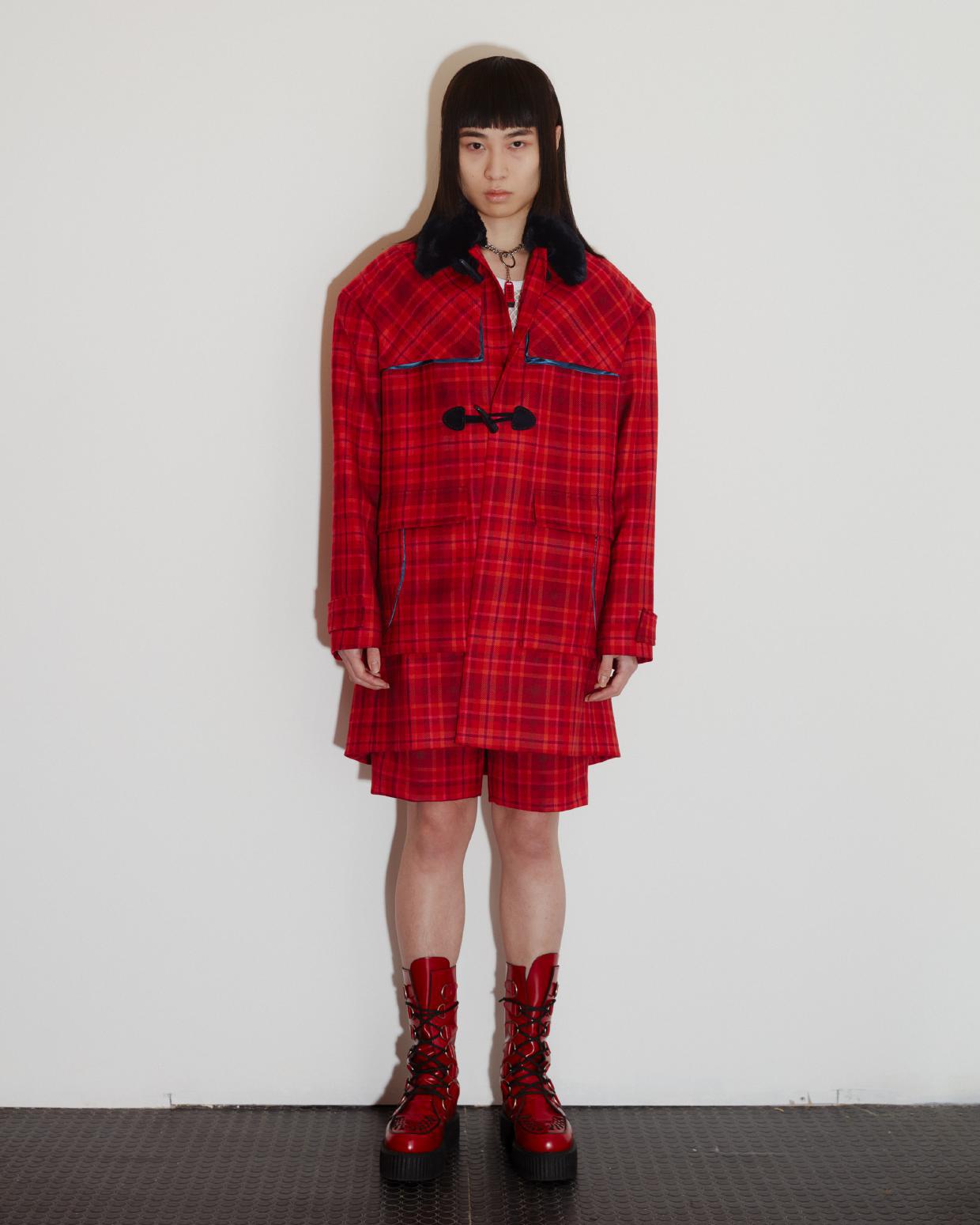 日本の血筋を引き、中国で暮らした経験もある韓国人デザイナー、ジェケウン・チョウ(Jekeun Cho)。一般大学を卒業したが、友人に勧められたウォン・カーウァイ(Wong Kar Wai)監督の「花様年華」に感化され、憧れだったファッションデザイナーの道に転向。ロンドンへ渡り、ロンドン・カレッジ・オブ・ファッションを卒業、2021年秋冬に自身のブランドをスタートした。ジェケウンが強く関心を注ぐのは人間の心理。心の内側を見せるように裏地をカッティングで露出させ、脳細胞を連想させる刺繍やニッティング、サイケデリックな柄や極彩色など、素材やテクニックなどあらゆる要素で人間の心理を表現している。