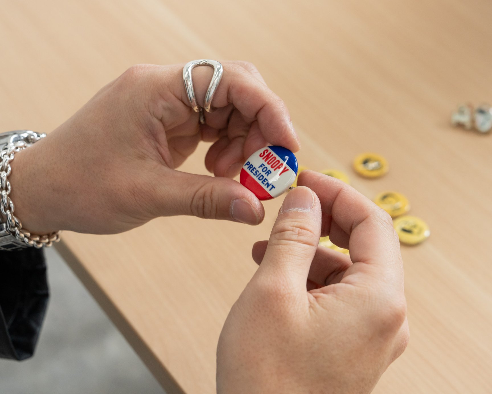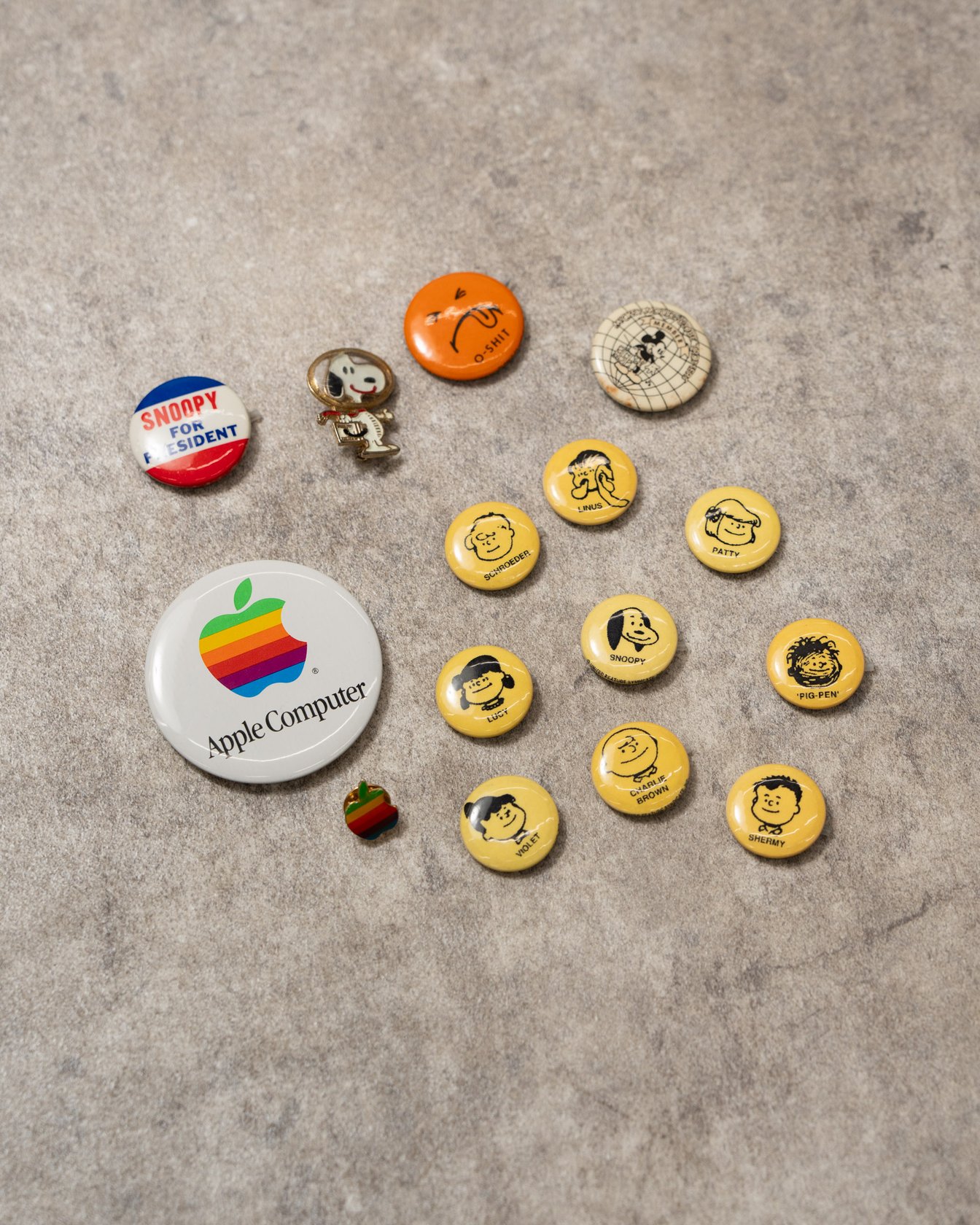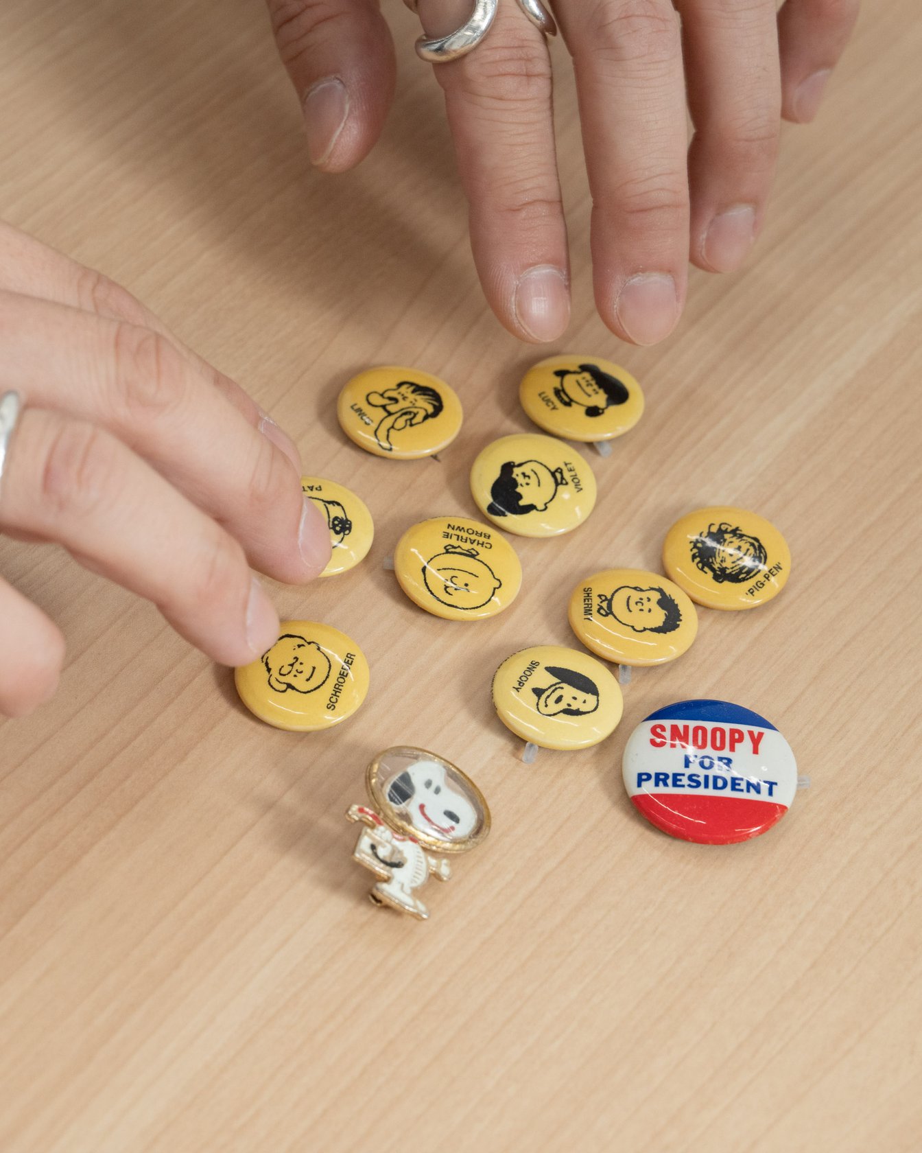 十倍:うーん、これかな。アポロが月に行った時に、スヌーピーがNASAとコラボした「アストロノーツ」と呼ばれているものですね。1960年代に発売された「ピーナッツ(PEANUTS)」のオフィシャルのものなんですけど、カプセル部分の状態を保っているものがすごく珍しいんですよね。ほとんどのものはないか、割れているか、という状態なので。あとこの「SNOOPY FOR PRESIDENT」もすごく気に入ってますね。ちなみに藤原ヒロシさんもこれをこよなく愛していて、昔よくつけていたんですよね。