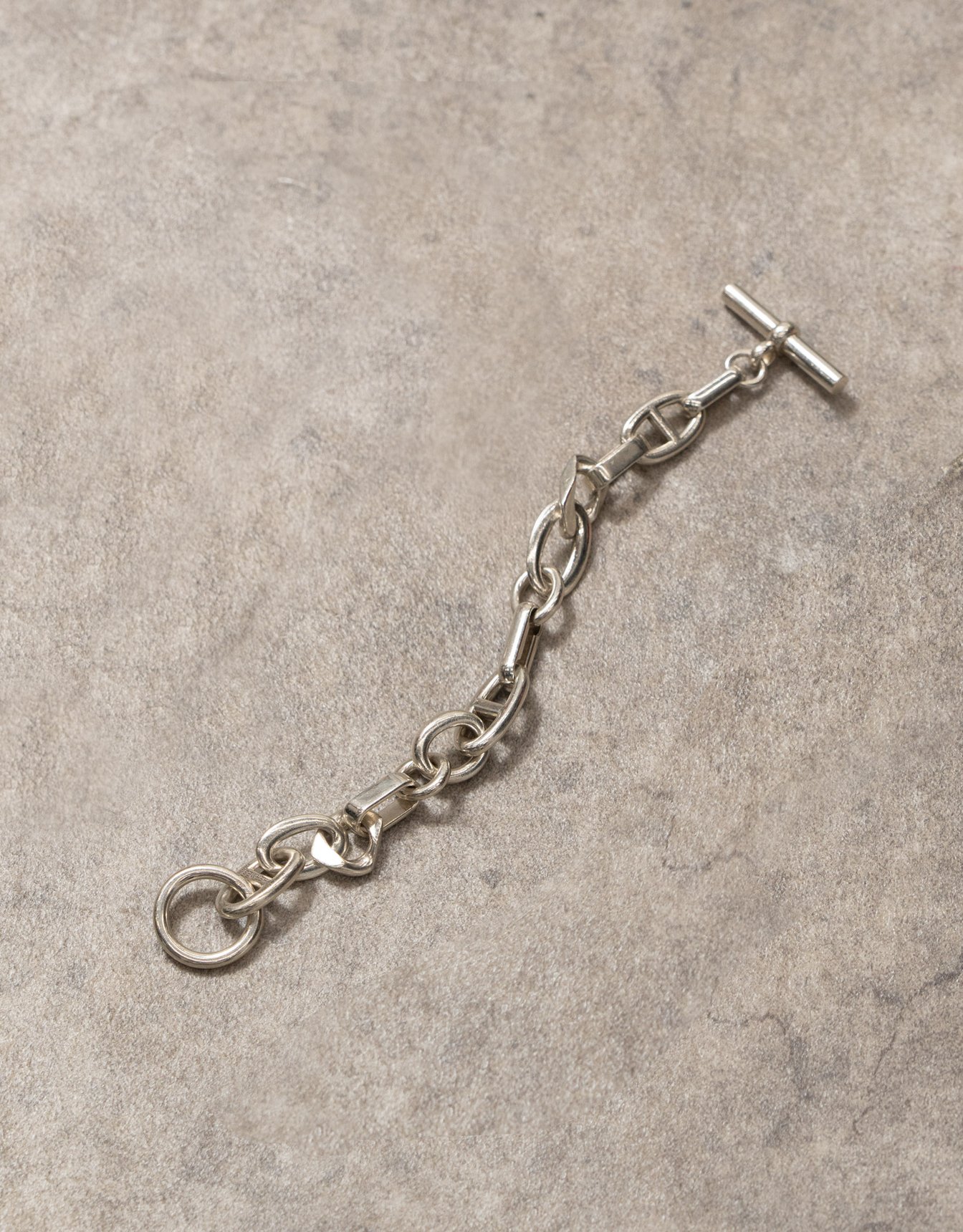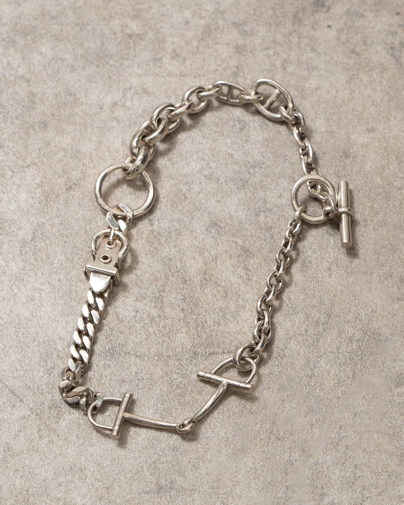 十倍直昭(以下、十倍):フランス語で「ランダム」を意味するモデルで、シェーヌ・ダンクル、ブックルセリエ、サランボという名作ジュエリーの駒をつなげたエルメス初のアイテムです。これはPM(プティ・モデル)というサイズで一番細いモデルなんですけど、実はシェーヌ・ダンクルのTGM(トレ・グランド・モデル)と同じぐらいの大きさだという(笑)。