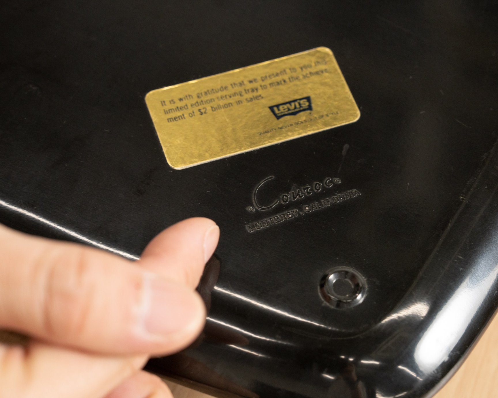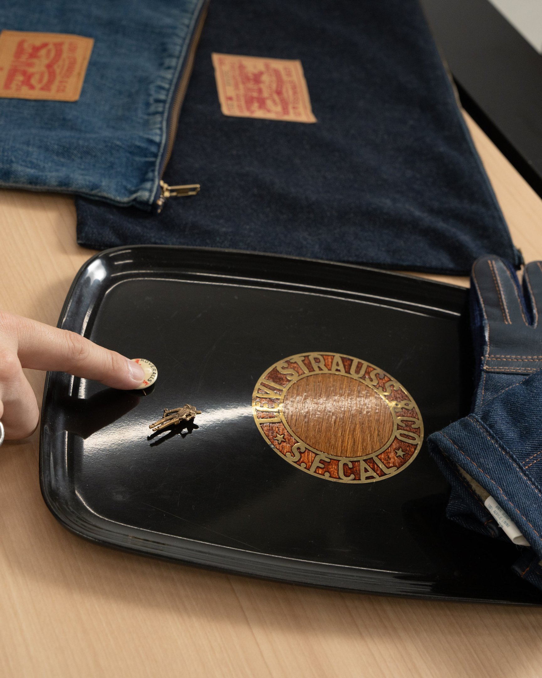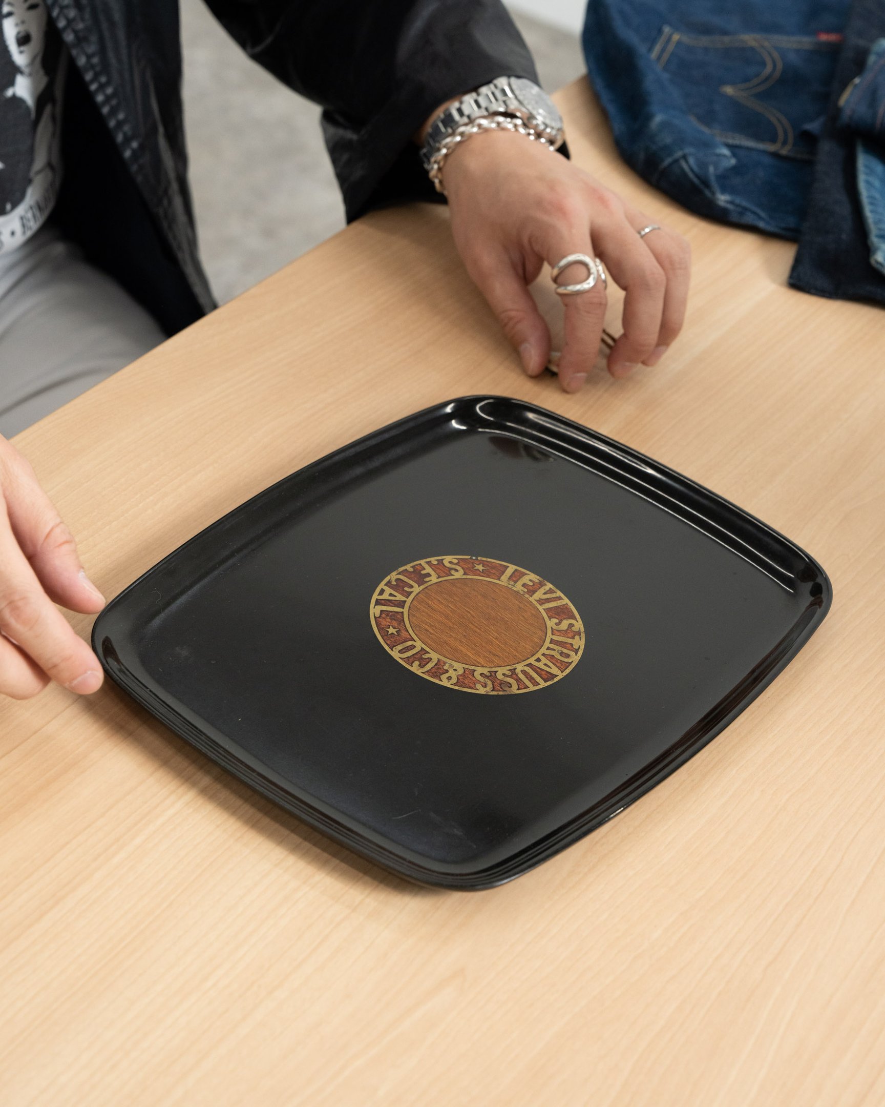 十倍:当時販促用で作っていたもので、ちゃんとオリジナルの刻印が入っています。このトレーシリーズは、リーバイス以外にもあるんですけど、結構コレクターがいる分野なんですよね。70年代終わりぐらいに作ったものかな。デニムを買ってくれたお客さんにノベルティとして配ったものだと思うんですけど、予想以上にクオリティが高いんですよね。実はこれと同じものを2枚持っているんですけど、状態が綺麗なものを今年買い直したんです。あとこれも凄いですよ。