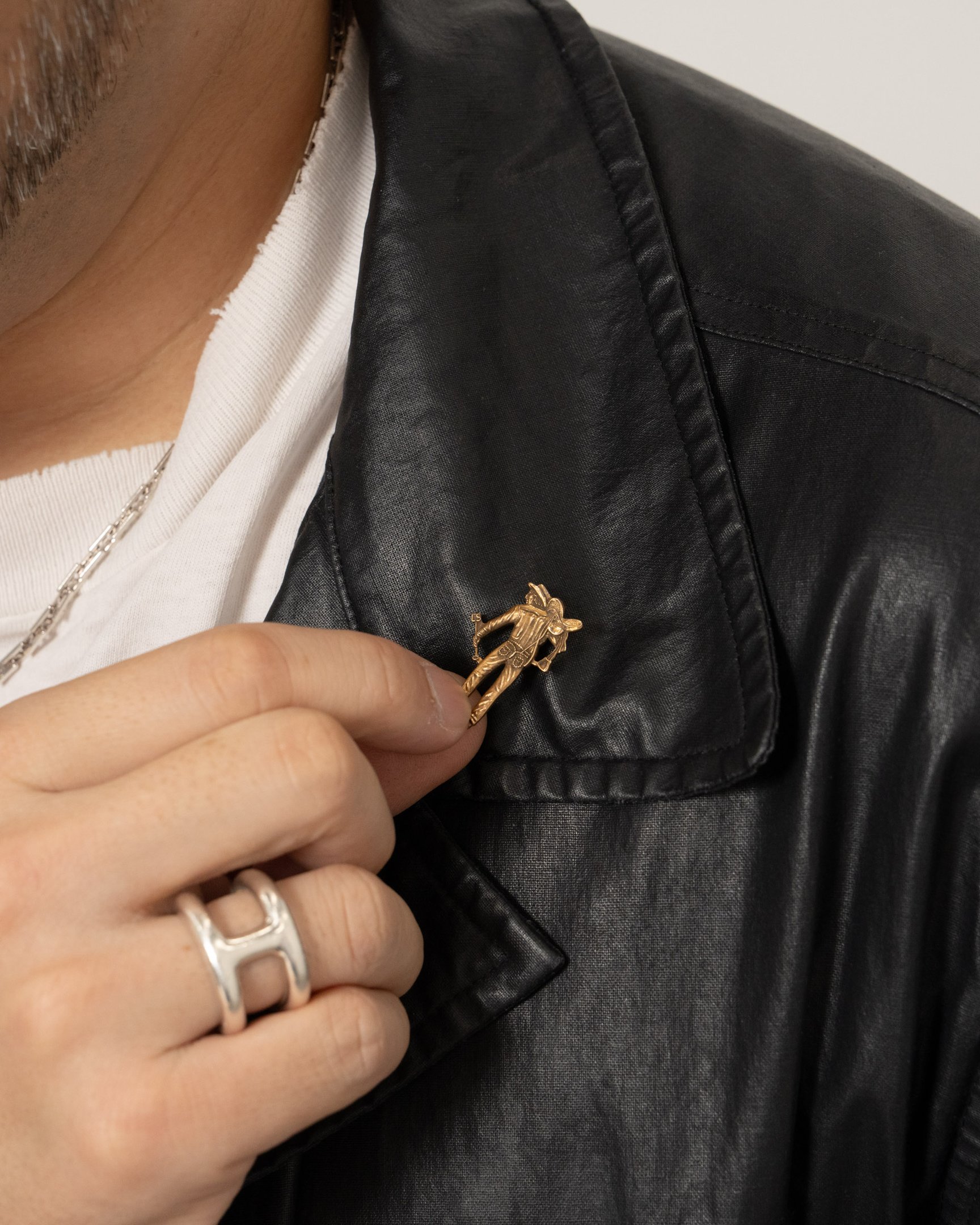 十倍:いや、これは50年代ぐらいにリーバイスの中で優秀な社員さんに配っていたバッジなんです。シルバーも存在するんですけど、さらに優秀な人にだけ10k製のゴールドのものを渡していたんですよね。このゴールドが本当に出回らないんですよ。欲しいなと思っているところに出てきたので、速攻で買いました(笑)。