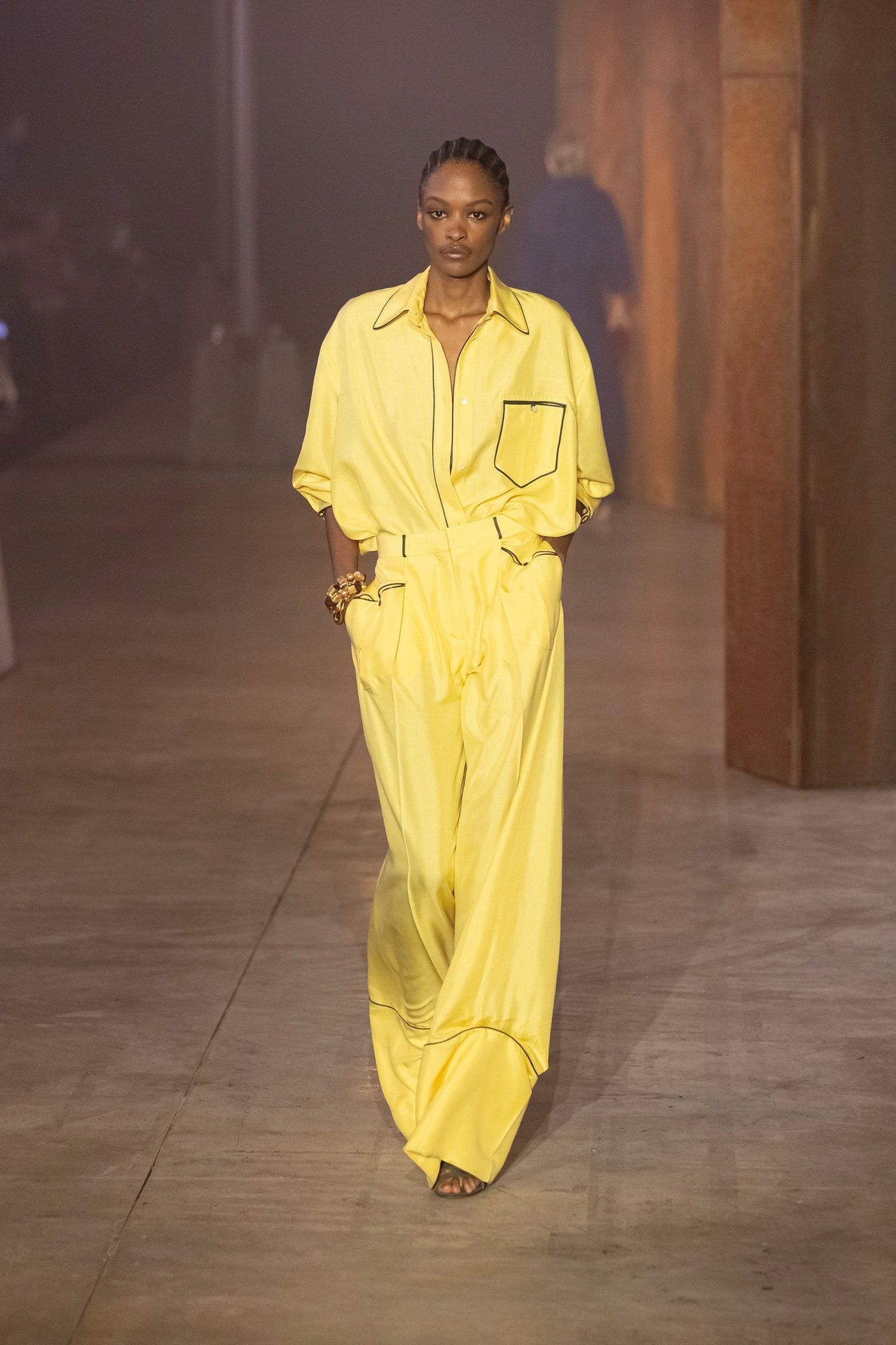メンズとウィメンズで構成されたコレクションは、センシュアルでグラマラスなムードが全体的に流れ、ベルベットのスーツをはじめ、ダブルブレストテーラードジャケットや太ももの付け根までスリットが入ったセクシーなシャツドレス、パイピングパジャマ、サファリテイストのセパレーツ、アビエイタージャケットなどリラクシーでクラシックなワードローブに、ビラセノールならではの現代的なひねりを加えた。