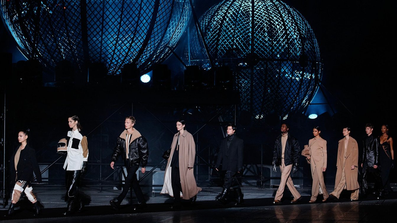モーターサイクルのパワースーツからもインスピレーションを得たといい、プロテクションのデザインをディテールに取り入れたアウターや、バイカージャケットやパンツといったアイテムも登場。ショー中盤には、ランウェイに設置された球体の中でバイカーが縦横無尽に回転するスリリングなパフォーマンスが披露され、ショーを盛り上げた。