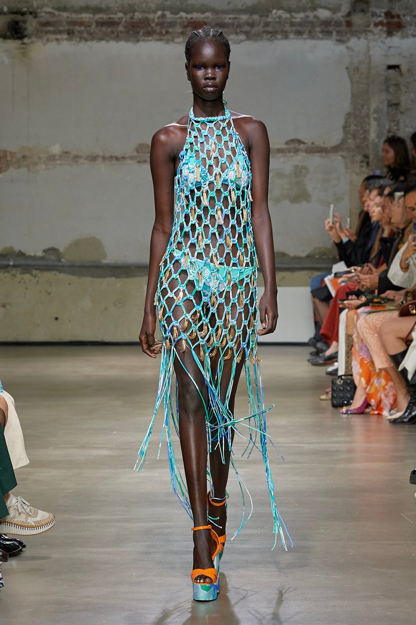 ファーストルックのマクラメを応用したドレスや、初登場のジーンズが印象的で、ラストを飾ったのは軽やかなパラシュートドレス。クリエイティブディレクターのジョージ・ルックス(Georg Lux)は、クリエイティビティの役割として、混乱した世界から自身を解放する夢のような場所を表現したという。