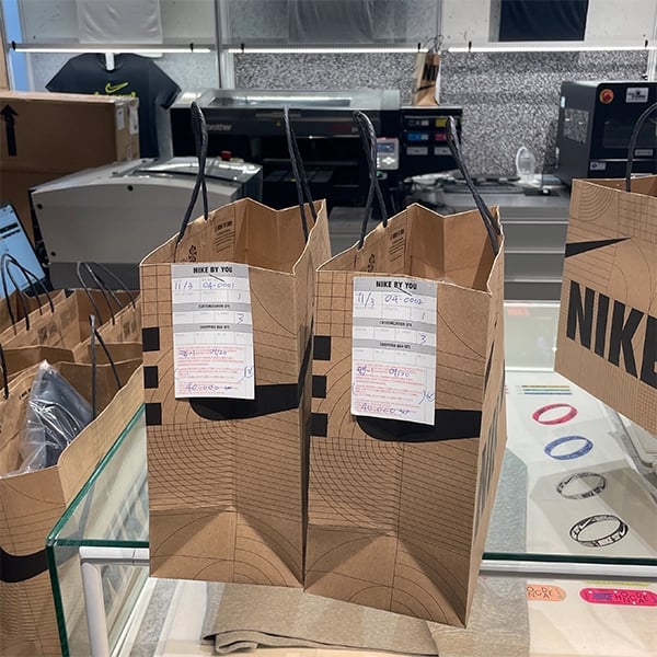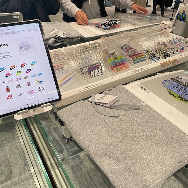 お会計後から完成までの時間は店舗や混雑状況によりますが、今回ナイキホンデで店員さんに聞いたところ、キャップが10分ほど、Tシャツやフーディーなどのプリントがあるものは20~30分ほどだそう。