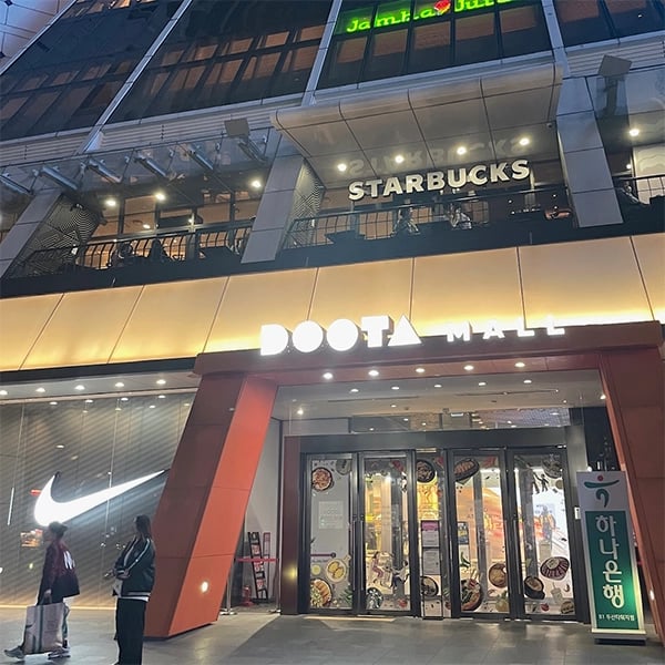 続いて紹介するのは、「NIKE DOOTA(ナイキドゥータ)」。東大門(トンデムン)駅から徒歩5分ほど、東大門歴史公園(トンデムンヨッサムンファゴンウォン)駅から徒歩6分ほどの場所にある「DOOTA MALL(ドゥータモール)」の1階にあります。