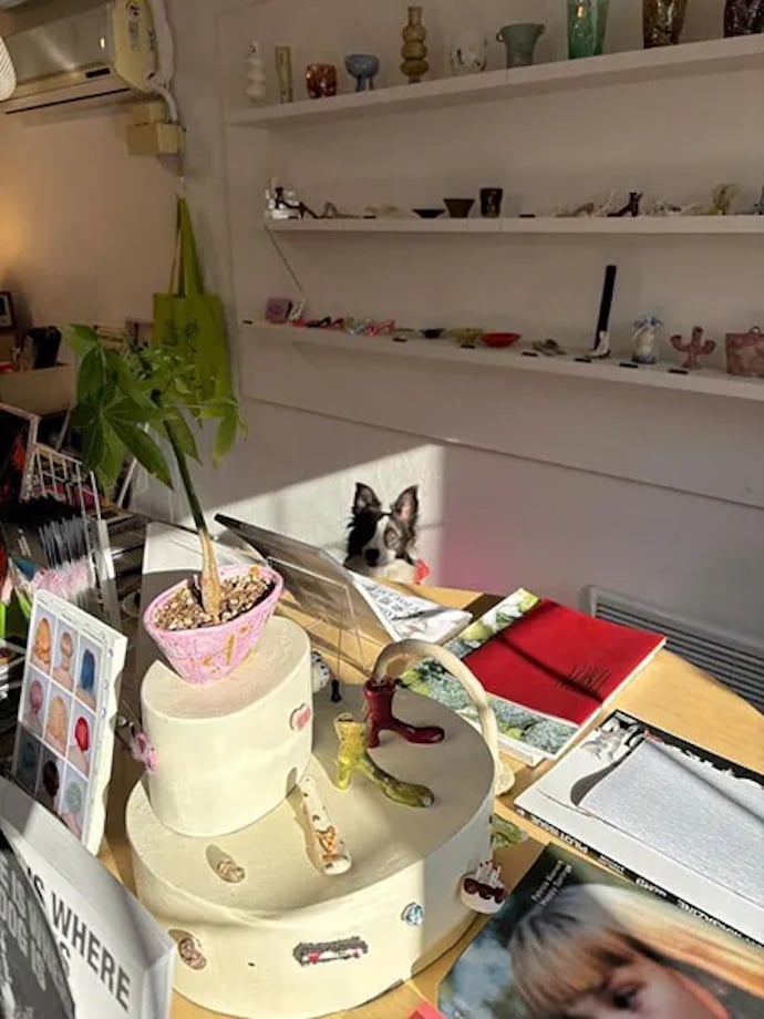 tomoyo:陶器の置物や本など、目を引くいろいろなものが販売されていますし、店内にいるワンちゃんがとにかくかわいいんです!