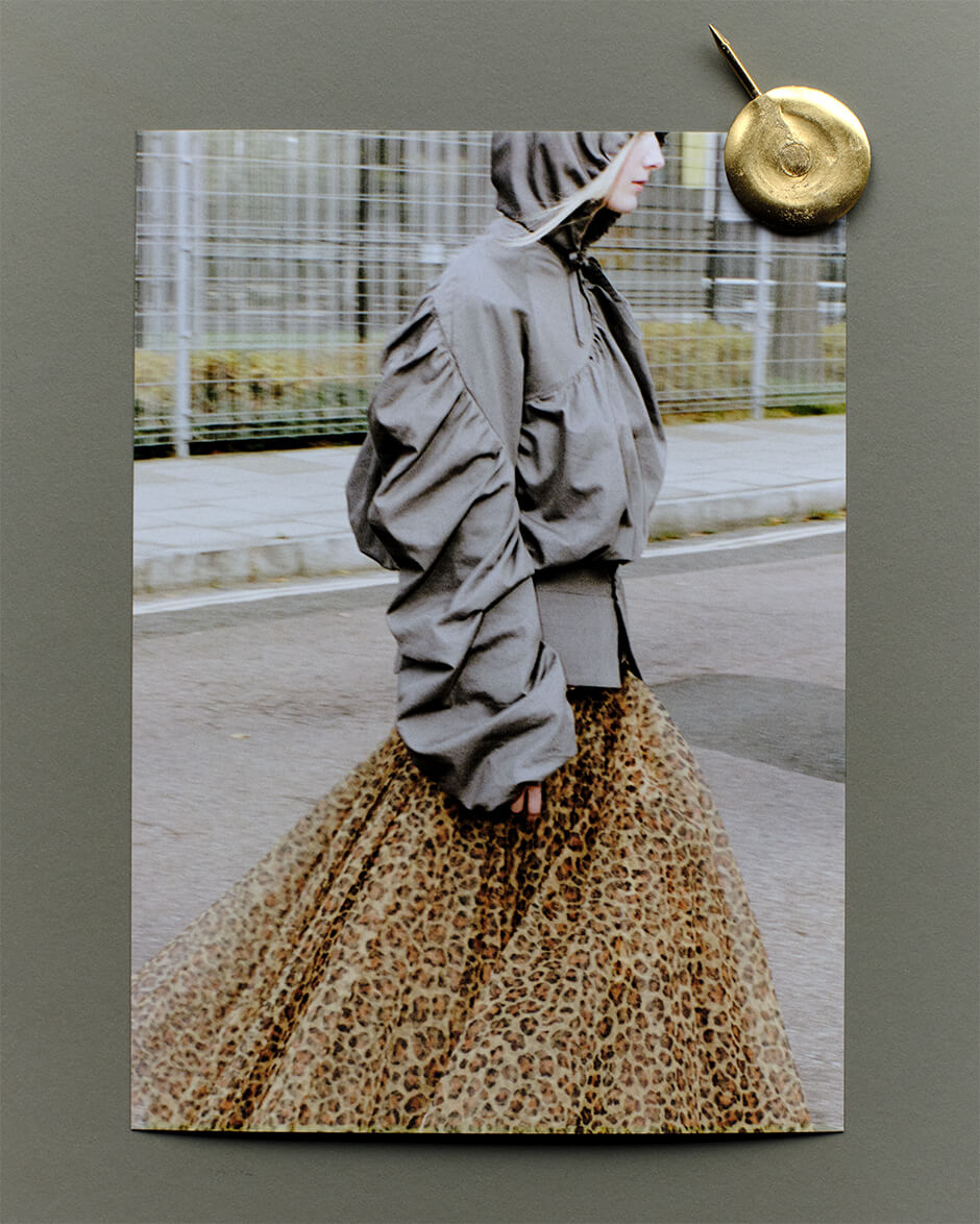 jacket and skirt by MOLLY GODDARD, hoodie by STRONGTHE