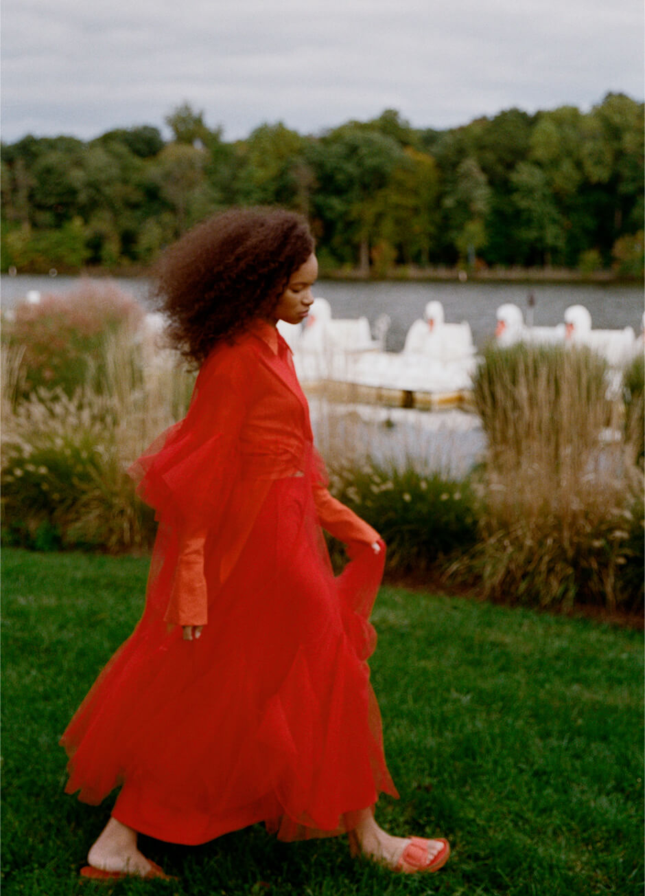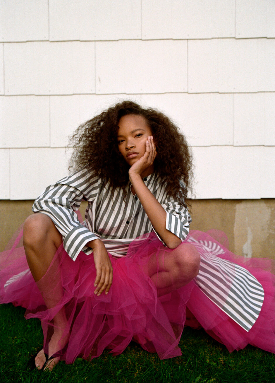 dress by PROENZA SCHOULER WHITE LABEL, skirt by KATE HEWKO, sandals by STUART WEITZMAN