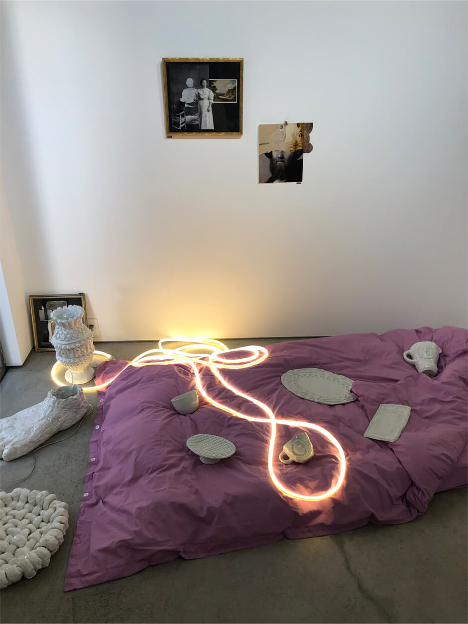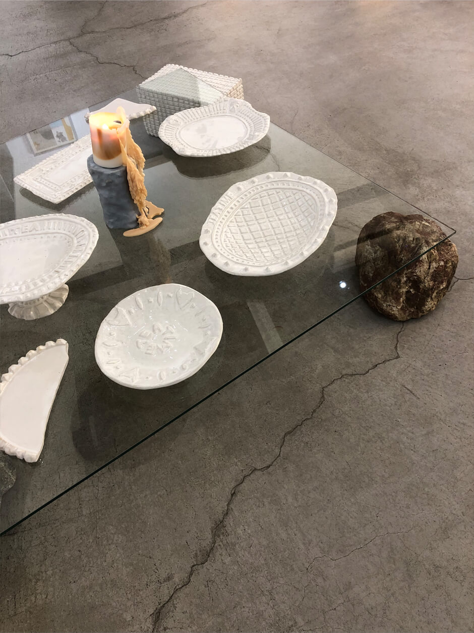 2023年12月にgalerie P+ENで行われた展示の巡回展として常滑の地で開催される本展では、日々の大切なお茶の時間に、それぞれの楽しみ方で一息つけるようにと、新作のカップや小ぶりのお皿などが制作された。